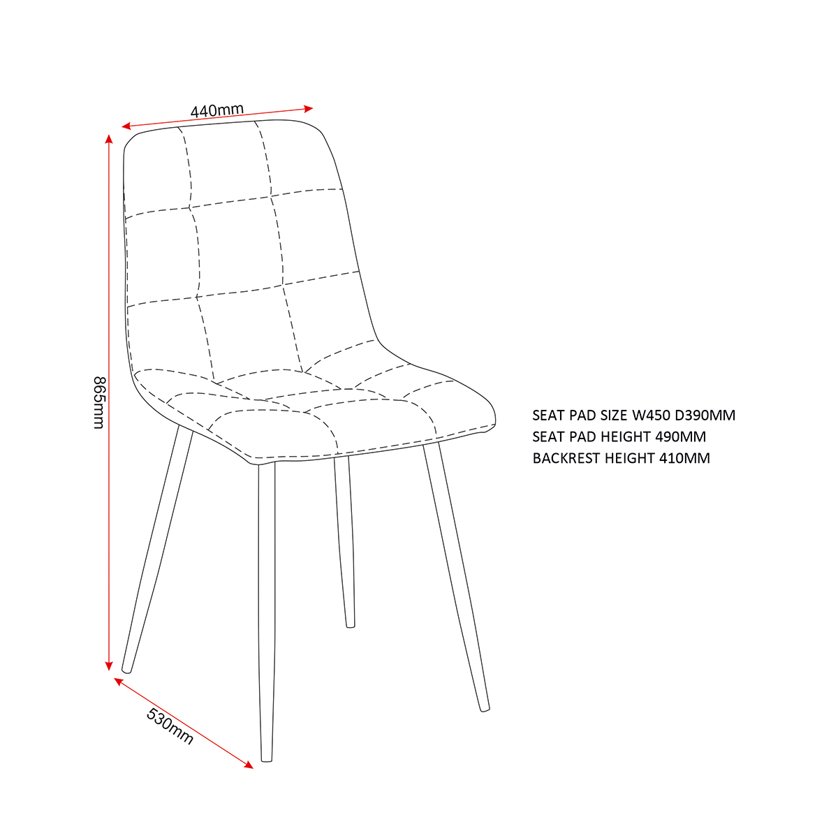 Chair Assembled Dimensions: Width: 44 x Depth: 53 x Height: 86.5 (cm)
