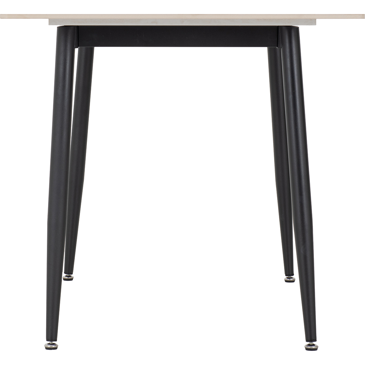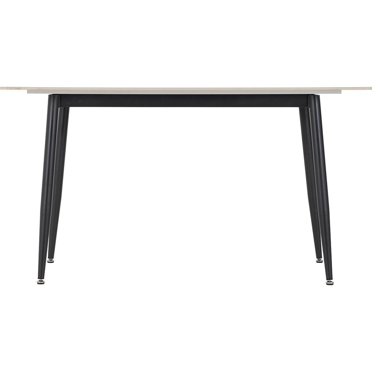 Modern Design: Elegant marble-effect tabletop for a sophisticated look. Spacious Surface: Ideal for family meals, dinner parties, or open-plan living spaces. Slim Tapered Legs: Black metal legs add a sleek, contemporary touch. Durable Construction: High-quality materials for strength and longevity. Versatile Style: Complements modern, minimalist, and chic interiors.