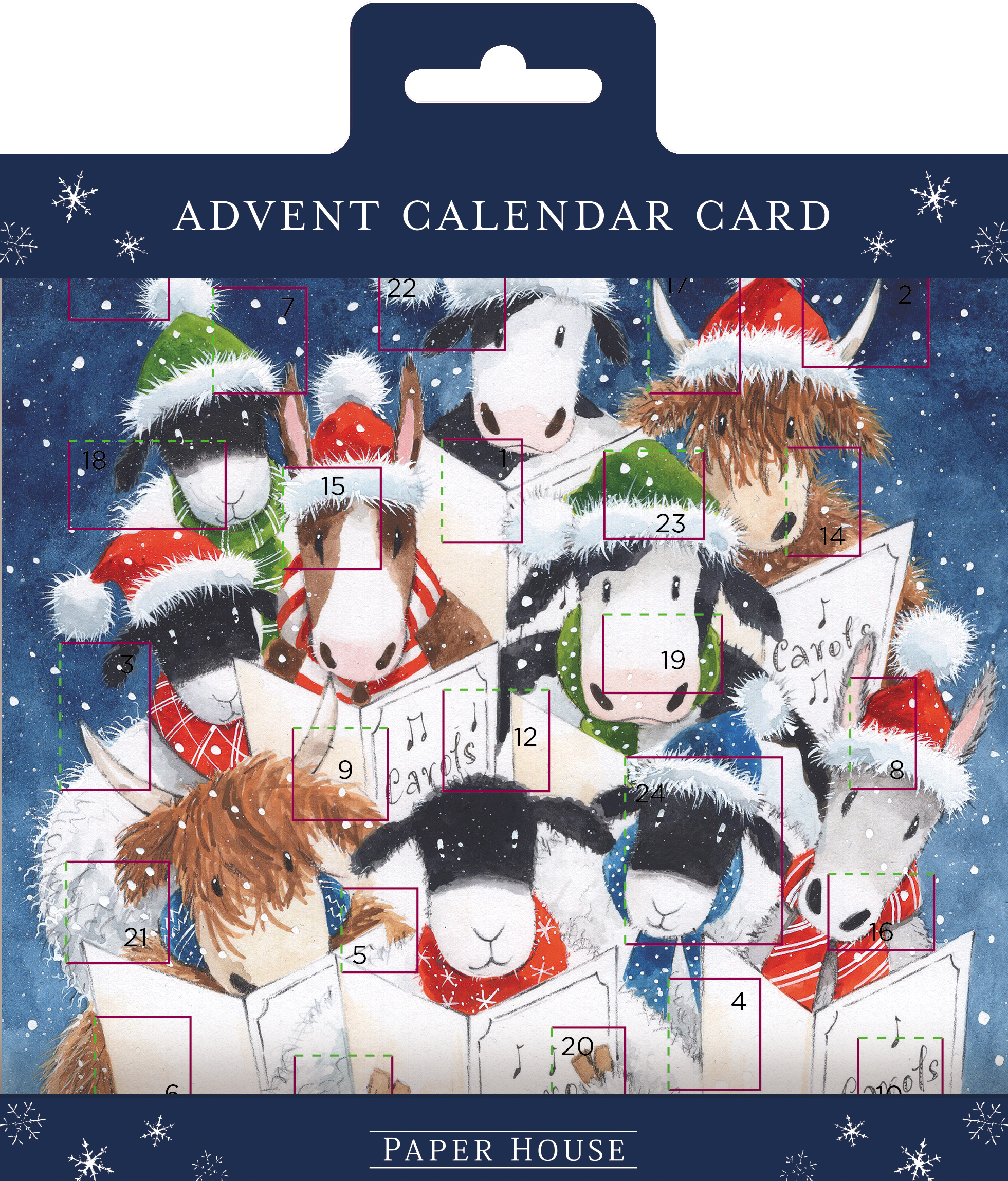 Celebrate the countdown to Christmas with this heart-warming Festive Friends advent card. Featuring a joyful seasonal scene and 24 doors to open, each revealing a charming hidden image, it’s the perfect way to spread festive cheer. The inside greeting reads ‘Merry Christmas & a Happy New Year’ and it comes complete with a white envelope for easy posting.