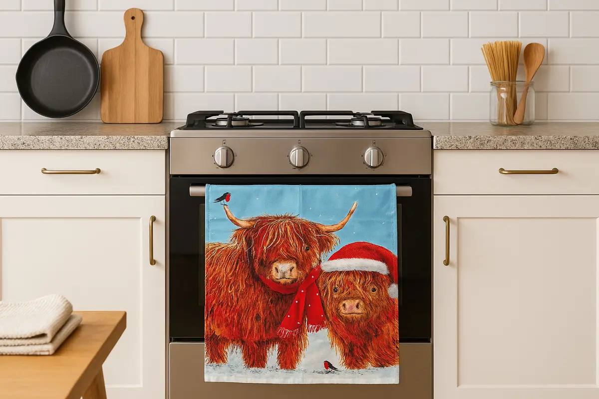 Add a touch of festive cheer to your kitchen with this Limited Edition Festive Highland 100% Cotton Cow Tea Towel, featuring a charming seasonal design that’s full of character. Both practical and decorative, it makes a thoughtful gift or a lovely way to bring warmth and personality into your home this Christmas.