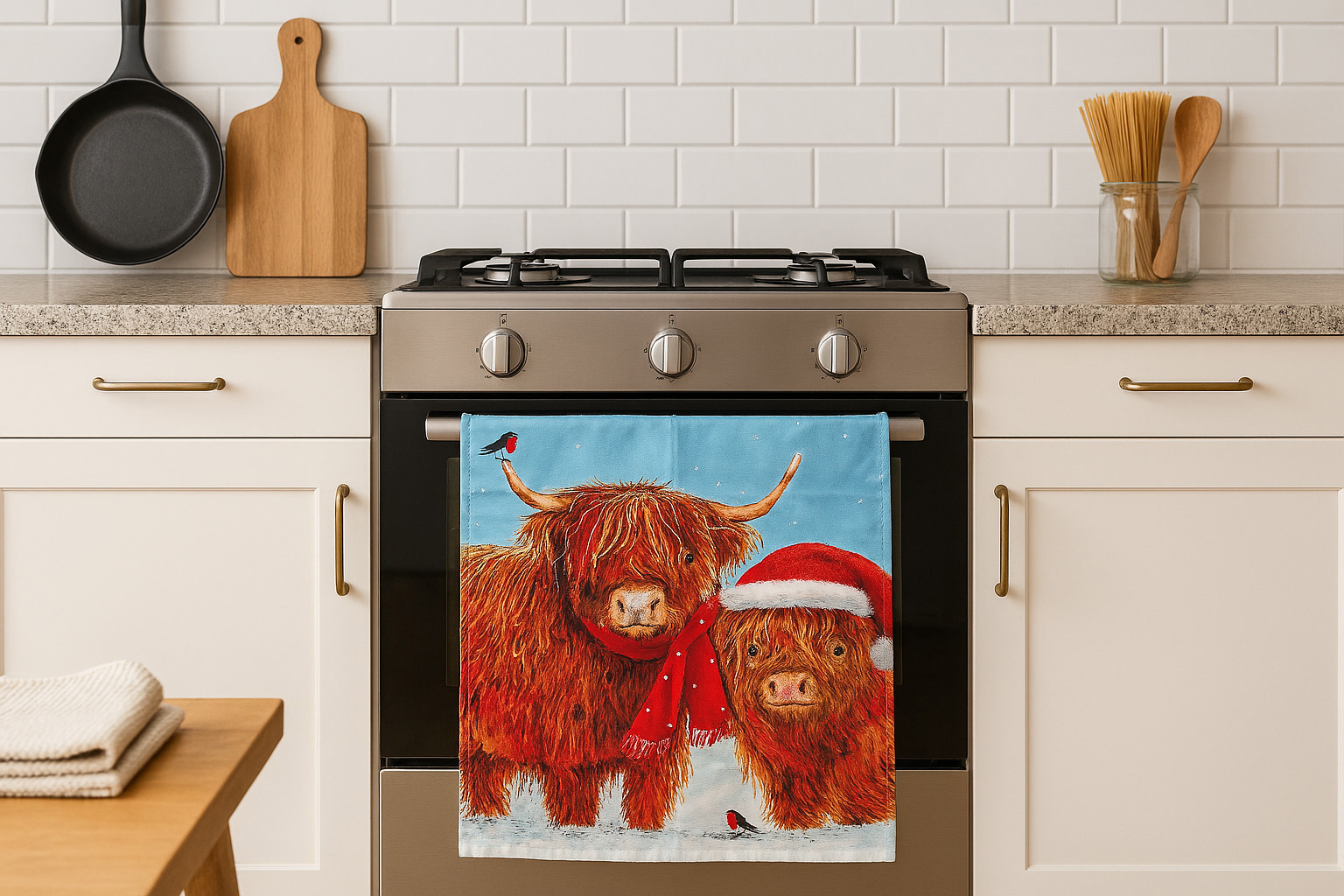 Festive Highland Cow Limited Edition 100% Cotton Christmas Tea Towel