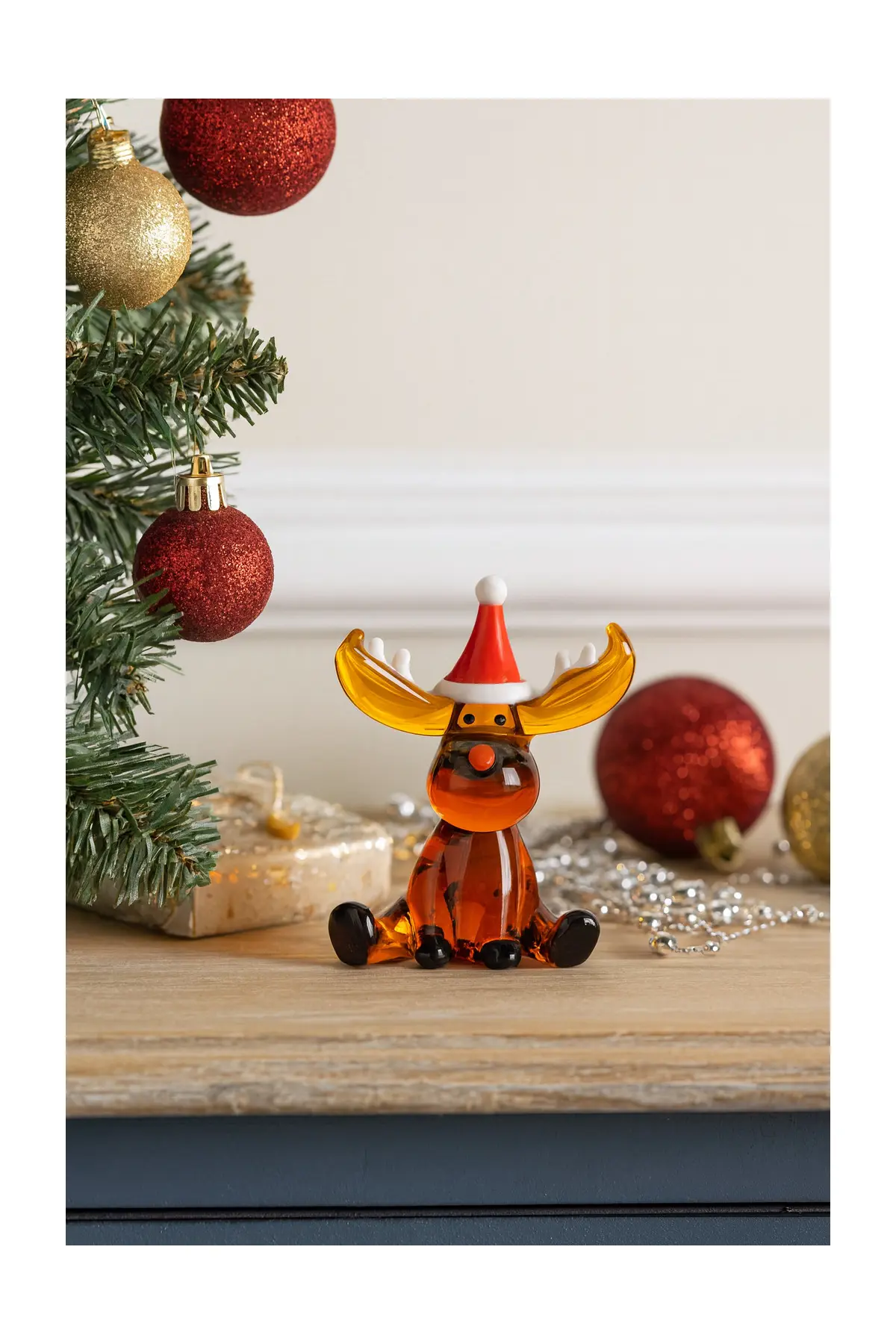 Festive Objet D'art Hand Blown Glass Reindeer Decoration