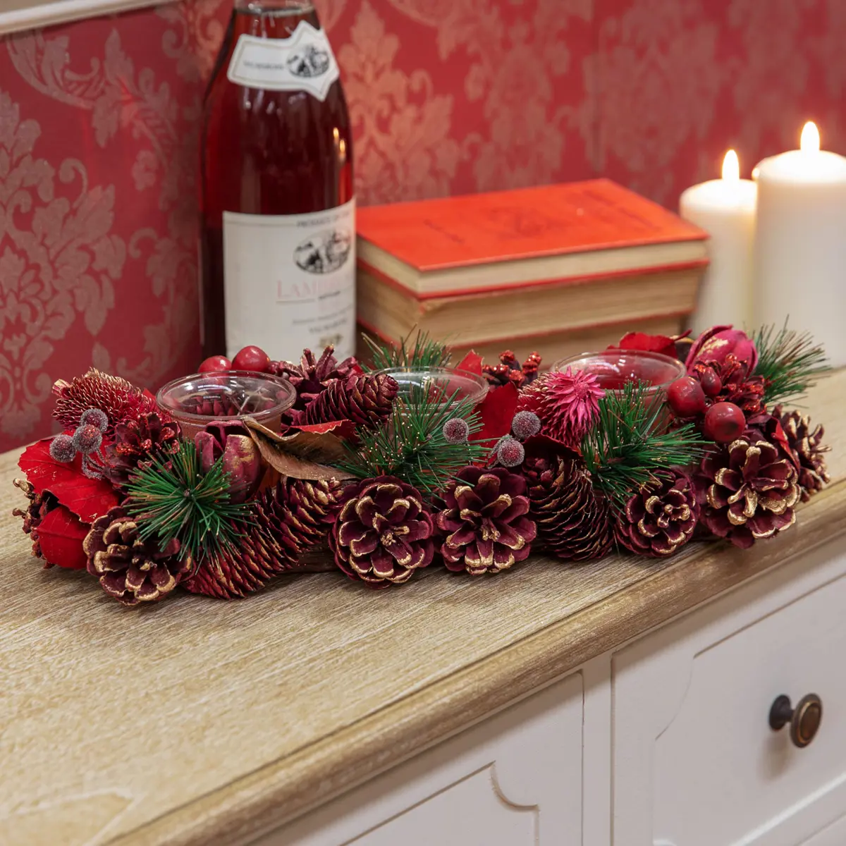 Festive Red and Gold Christmas Triple Tealight Holder Decoration