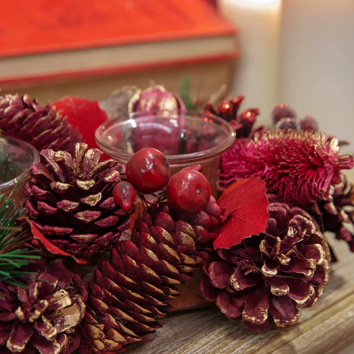 Make your holiday season shine even brighter with our Red and Gold Artificial Flower Christmas Triple Tea Light Holder. This exquisite piece combines the warmth of candlelight with the timeless charm of red and gold, creating a captivating and elegant focal point for your holiday decor. Whether you're looking to set the mood for a cosy evening or add a touch of opulence to your holiday gatherings, our tea light holder is the perfect choice.