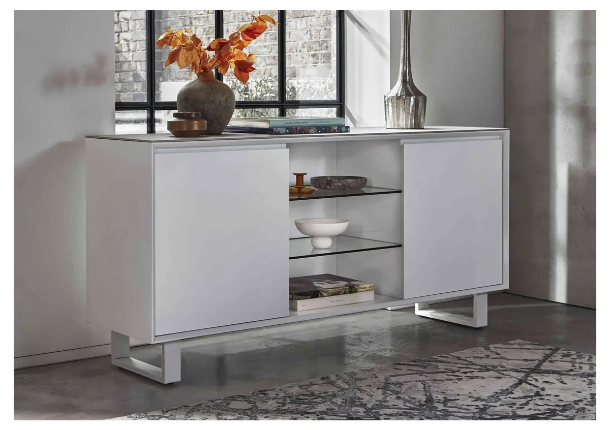 Bring sleek sophistication to your living space with the Glacier Large Sideboard with Motion LED Lighting. Combining a striking white ceramic and high-gloss finish with built-in LED lighting, this statement piece perfectly balances style and functionality for the modern home.