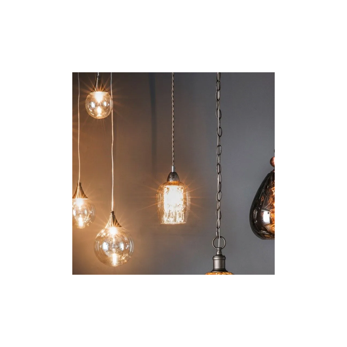 Light up your space with the Salinas Single Pendant Light. This exquisite light fixture has a single glass shade that houses cascading crystals. The twisted black cable contrasts the elegant champagne chrome of the light shade and the adjustable illumination allows you to set the perfect ambience for any occasion.