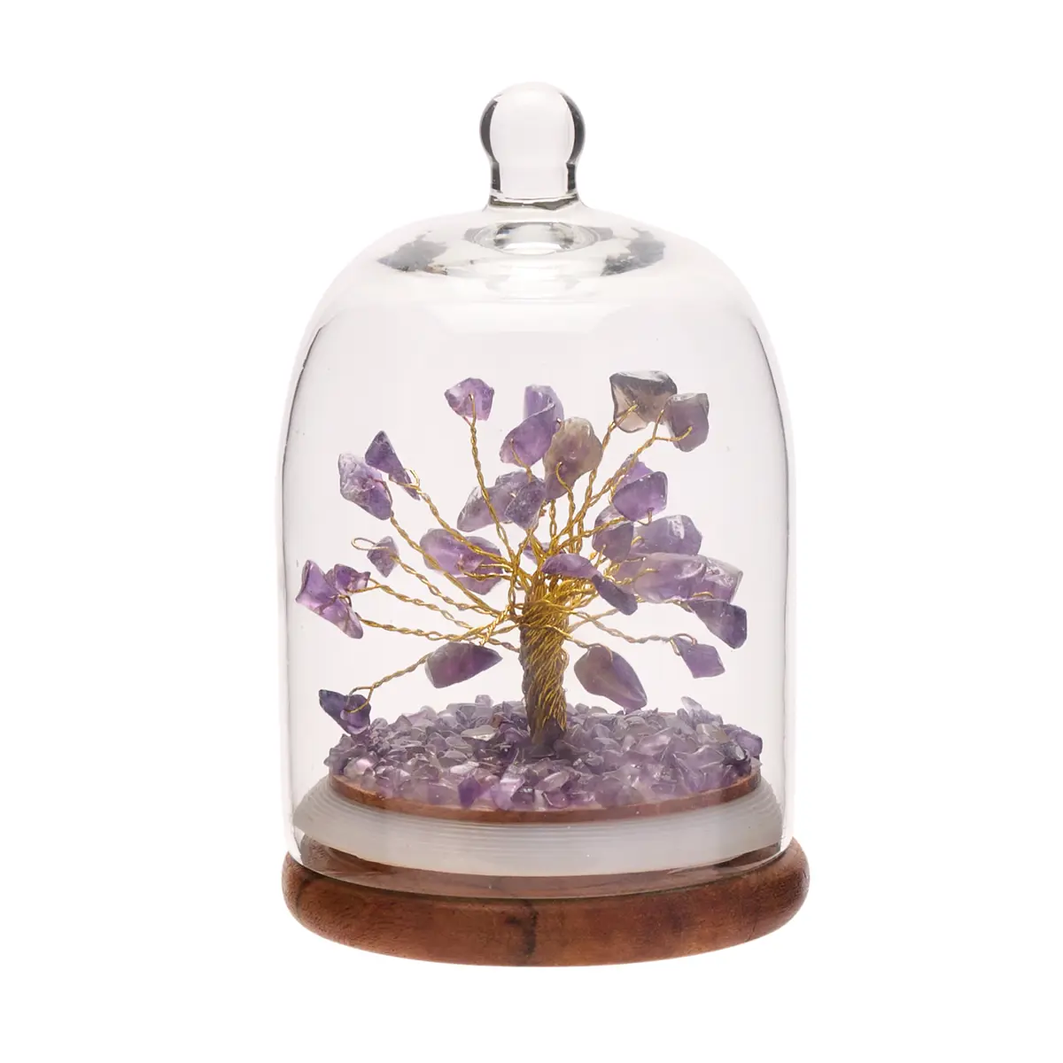 Miniature Amethyst gemstone tree of life in glass cloche from Serenity by SOPHIA.