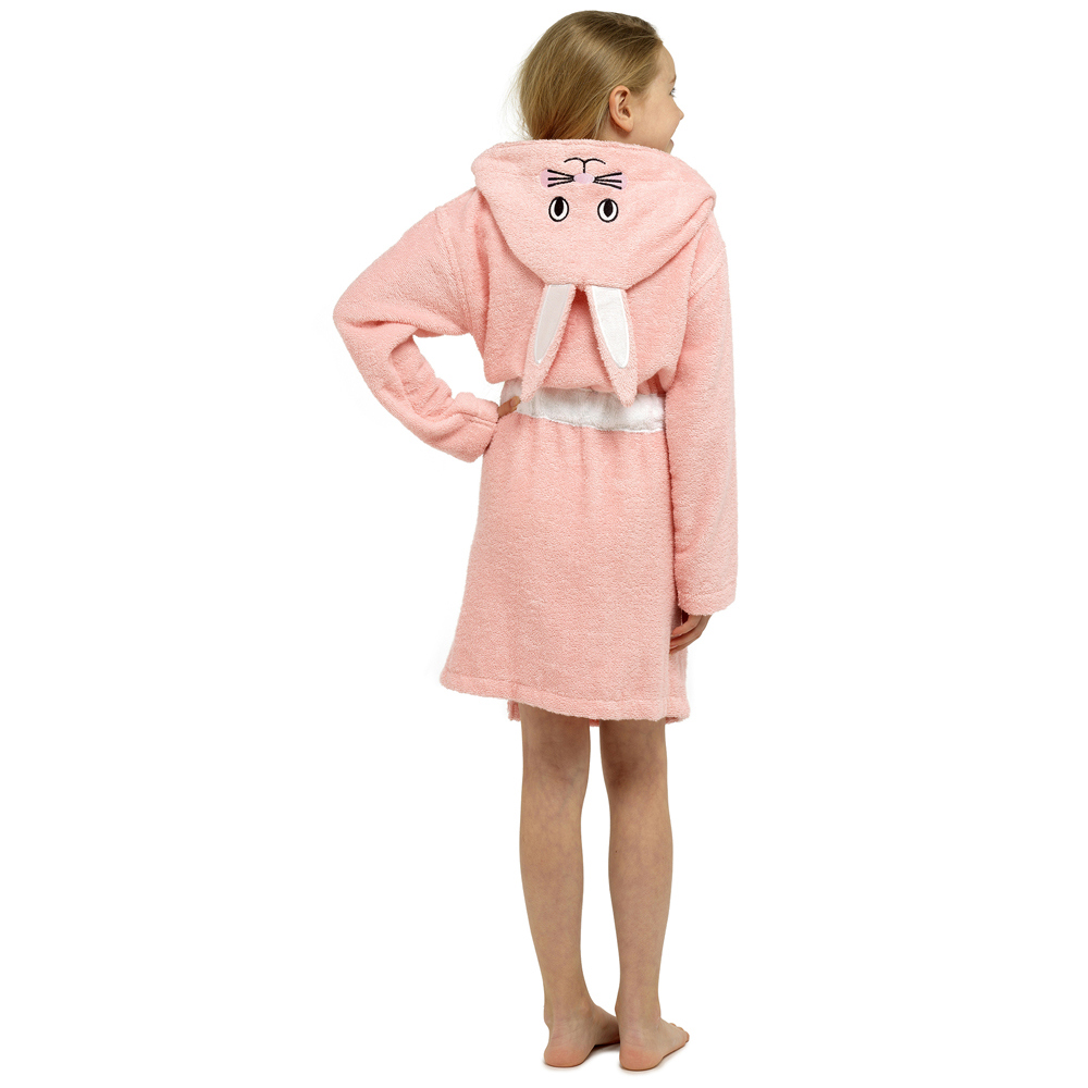 Girls Pure Cotton Pink Bunny Hooded Towelling Robe