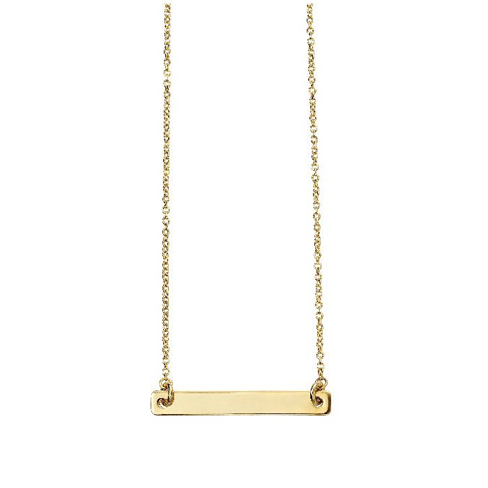 Update your jewellery collection with this lovely bar necklace. Made with gold plating, a rectangular shape and 41-50cm chain, this lovely necklace is wearable and stylish.