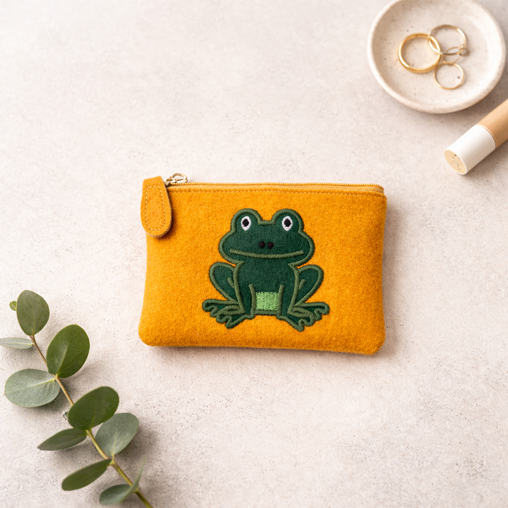 Add a cheerful touch to everyday essentials with this beautifully handmade frog design felt purse. Featuring an embroidered frog motif on bright yellow felt, it feels playful, comforting, and full of character, making it a lovely small gift or a joyful treat for yourself.
