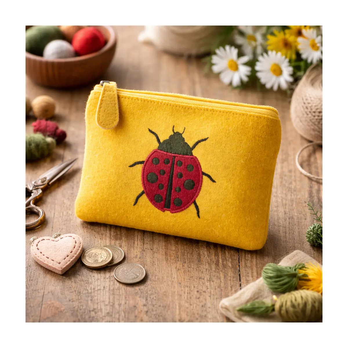 Add a cheerful touch to everyday essentials with this beautifully handmade ladybird design felt purse. Featuring an embroidered ladybird motif on bright yellow felt, it feels joyful, comforting, and full of character, making it a lovely small gift or a thoughtful treat for yourself.