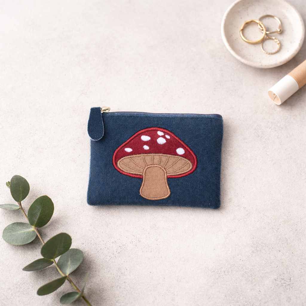 Add a touch of woodland charm to everyday essentials with this beautifully handmade toadstool design felt purse. Featuring an embroidered toadstool motif on deep blue felt, it feels cosy, thoughtful, and full of character, making it a lovely small gift or a treat for yourself.
