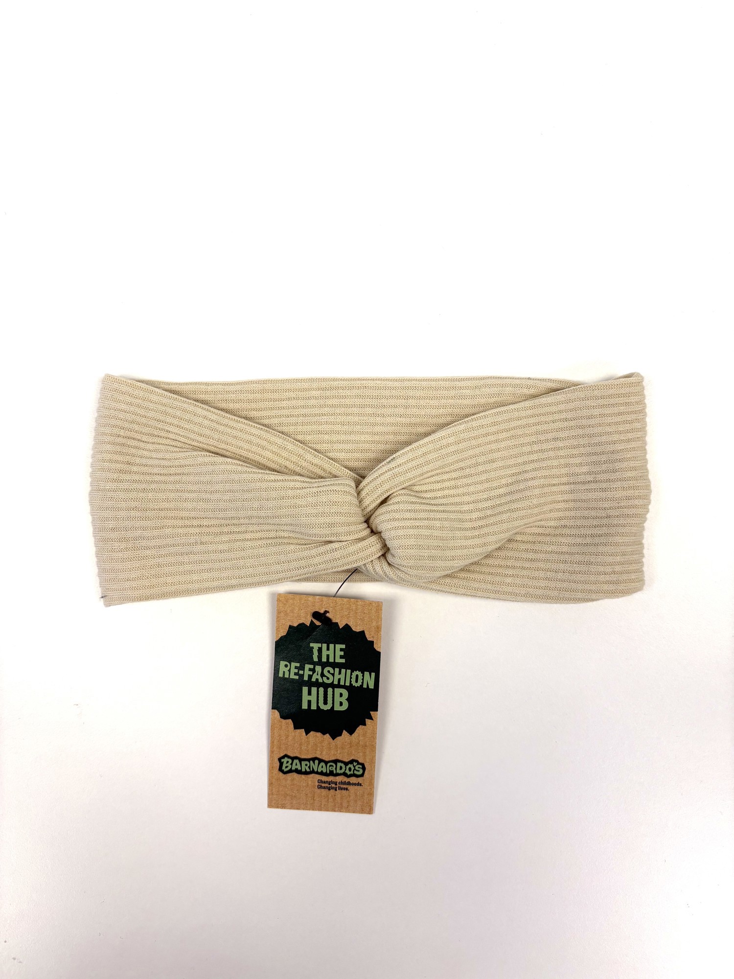 Handmade Upcycled Beige Ribbed Knot Headband Soft Stretch Accessory Pre-Loved