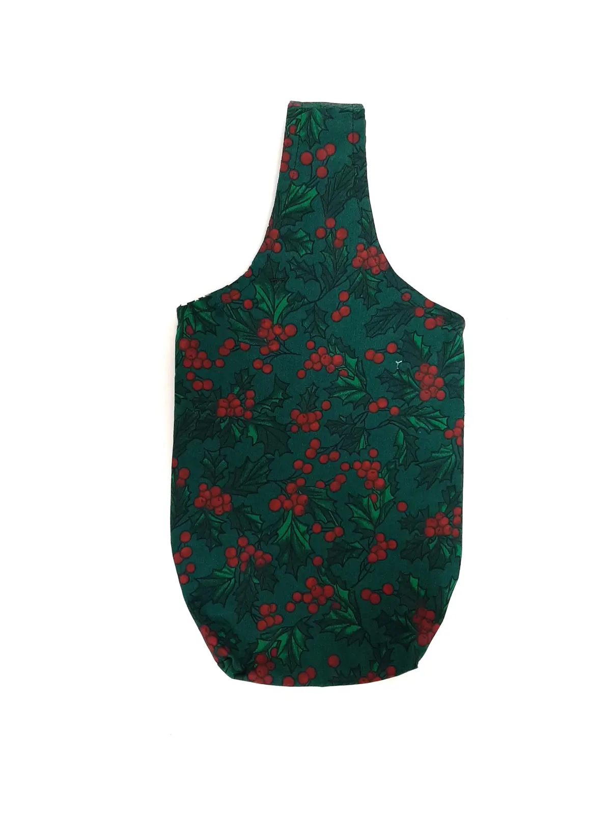 Handmade Upcycled Bottle Gift Bag Festive Holly Pattern Fabric Pre-Loved Re-Fashioned
