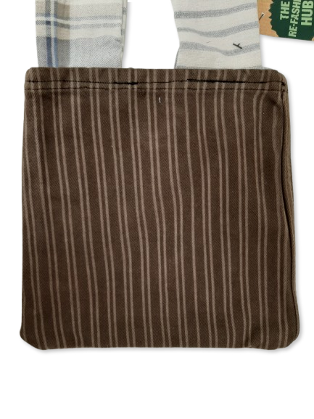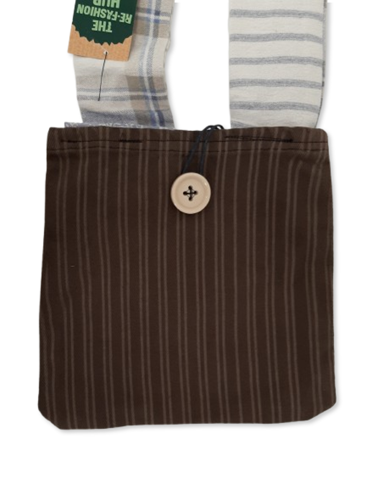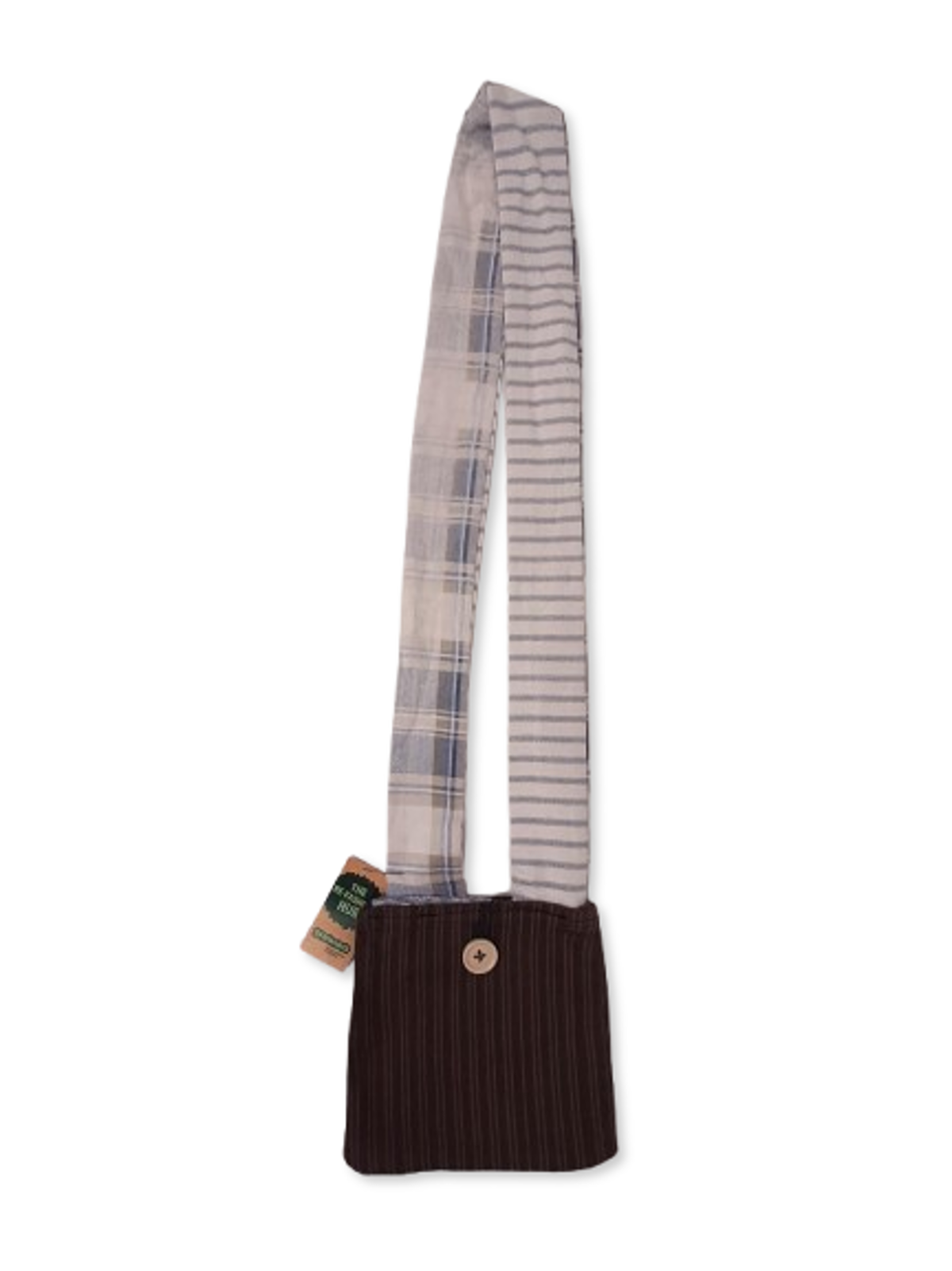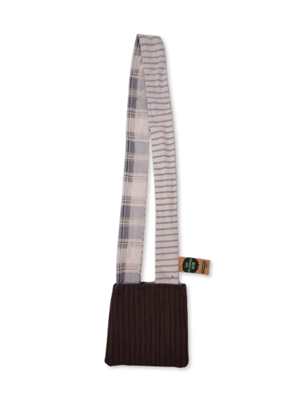 Carry sustainable style with this Handmade Upcycled Brown Over-Shoulder Bag, crafted by volunteers in our Re-Fashion Hub using mixed rescued textiles. Finished with a contrasting blue strap, it’s a practical and unique accessory perfect for everyday use, errands, or casual outings.