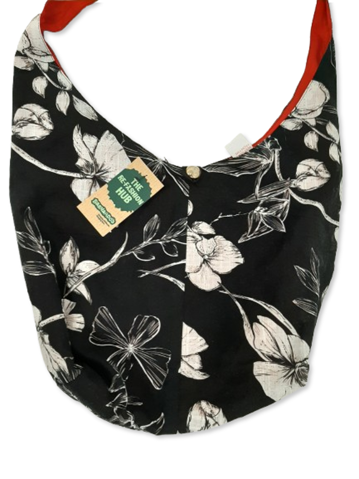 Bring sustainable elegance to your accessories with this Handmade Upcycled Black Floral Print Handbag, crafted by Re-Fashion volunteers using rescued mixed materials. Finished with a striking red inside lining, it offers a beautiful blend of practicality, creativity, and eco-conscious design.