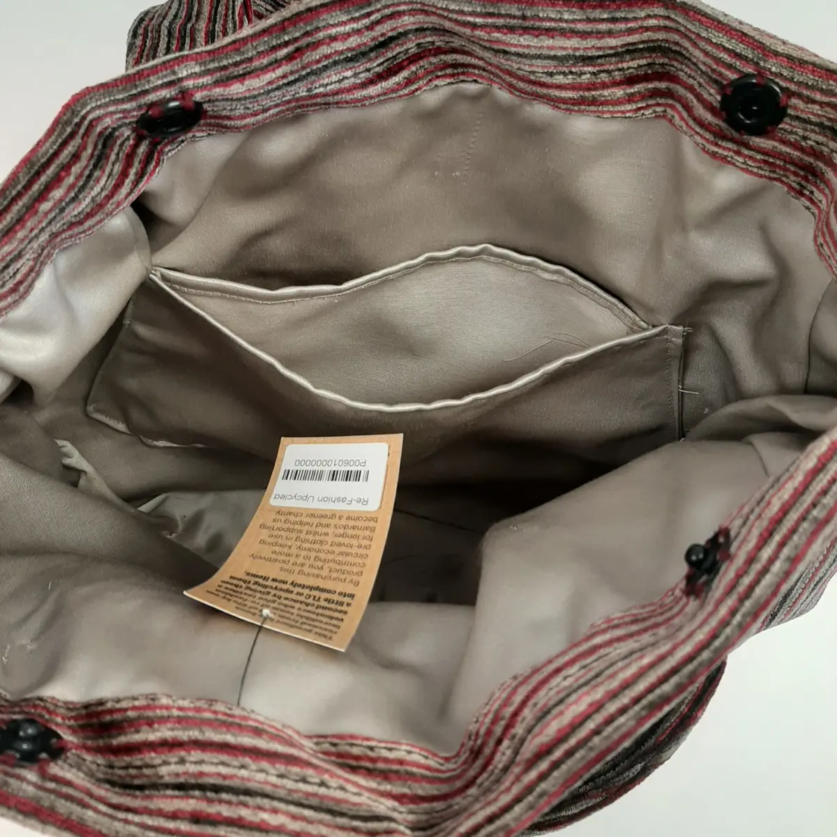 Handmade Upcycled Handbag Multicolour Stripey Shopper Bag Pre-Loved Re-Fashioned