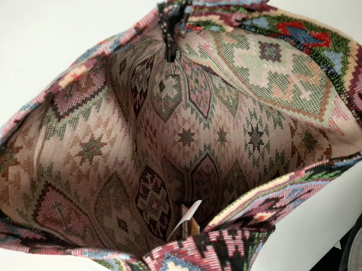 Add bold colour and sustainable style to your everyday accessories with this Handmade Upcycled Tote Bag, crafted from multicoloured Southwestern-inspired fabric. With its vibrant pattern and roomy shape, it’s perfect for carrying essentials while making a unique statement.