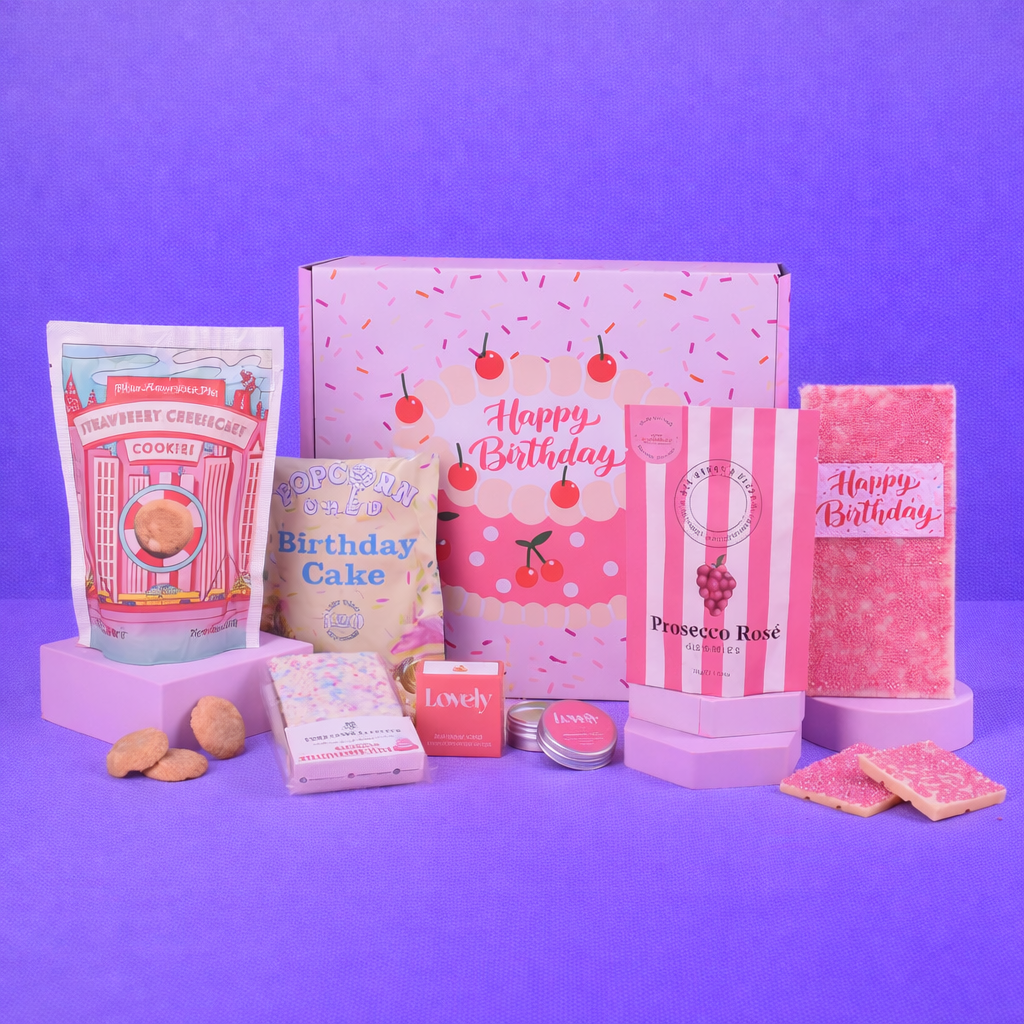 From cake-inspired popcorn and indulgent bakes to a nourishing lip balm and playful prosecco rosé gummies, each item adds a little moment of delight. Packed in a gift box and ready to enjoy, it’s a fun, feel-good birthday surprise that’s sure to be remembered.