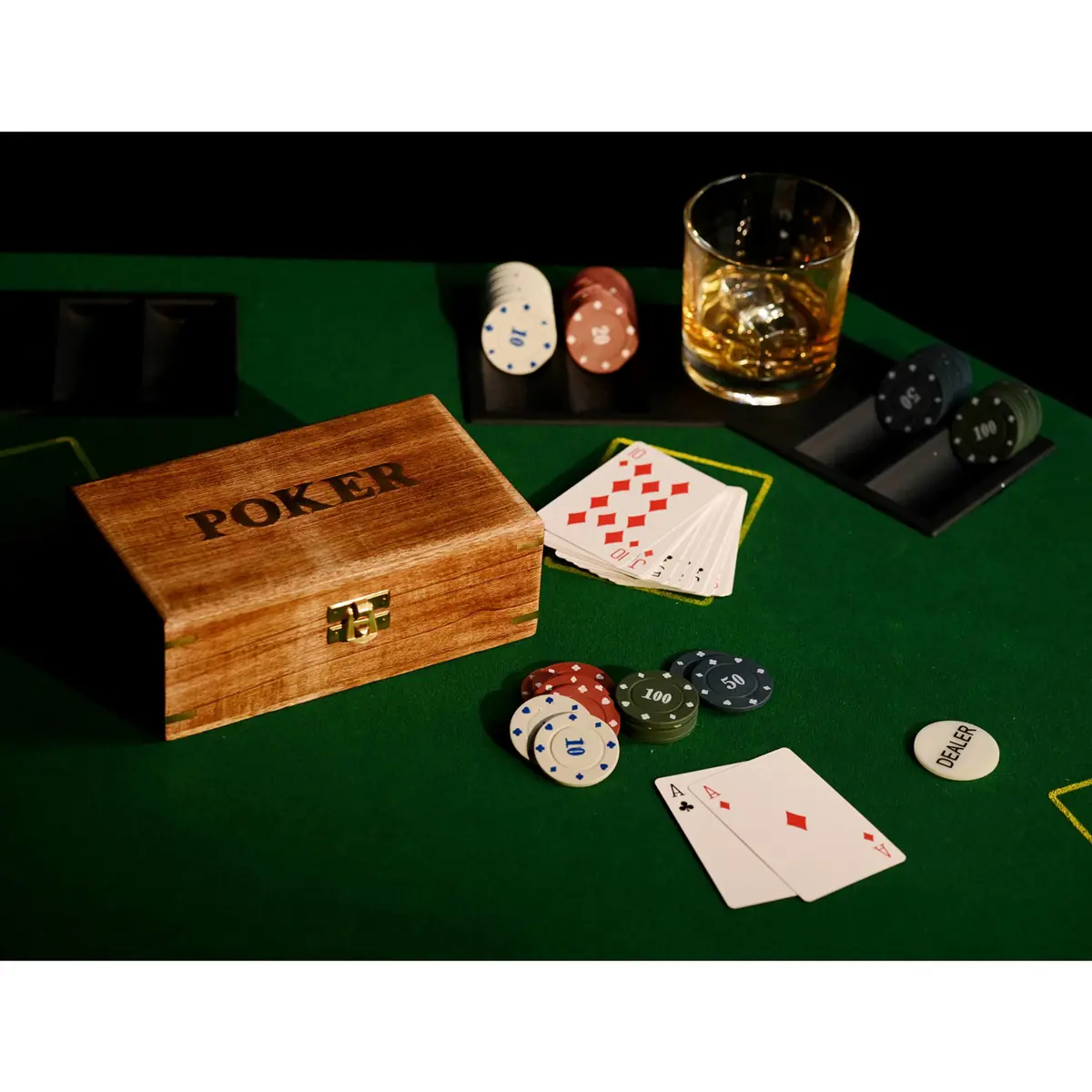 The Harvey Makin Wooden Poker Set is the perfect gift for the poker aficionado in your life. The timeless wooden box is embellished with brass detailing and contains all the essentials you'll need for an exciting games night. Impress your friends with this set as games night host or gift to someone you love.