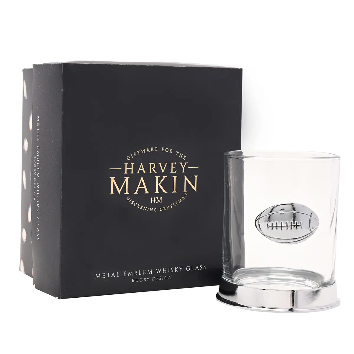This clear glass tumbler features a distinctive metal rugby ball emblem at its centre, creating a bold and eye catching design. Presented in a branded box, it is ready to gift and ideal for rugby lovers and whisky enthusiasts alike.