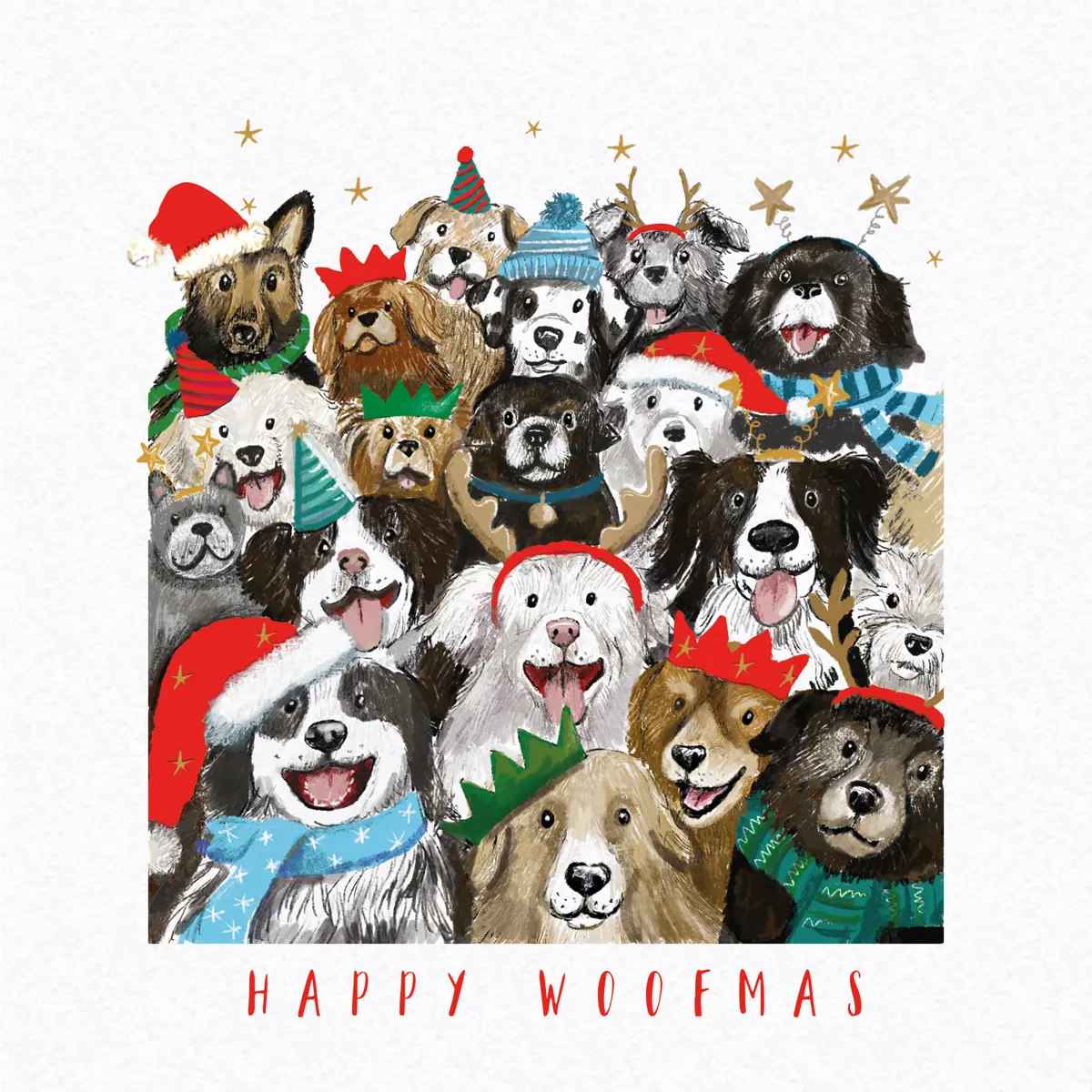 Spread festive cheer with our Happy Woofmas Charity Christmas Cards! Featuring an adorable group of joyful dogs dressed in Santa hats, antlers, and cosy winter scarves, this playful design is bursting with Christmas spirit. Perfect for dog lovers and anyone who enjoys a fun, light-hearted take on the festive season.