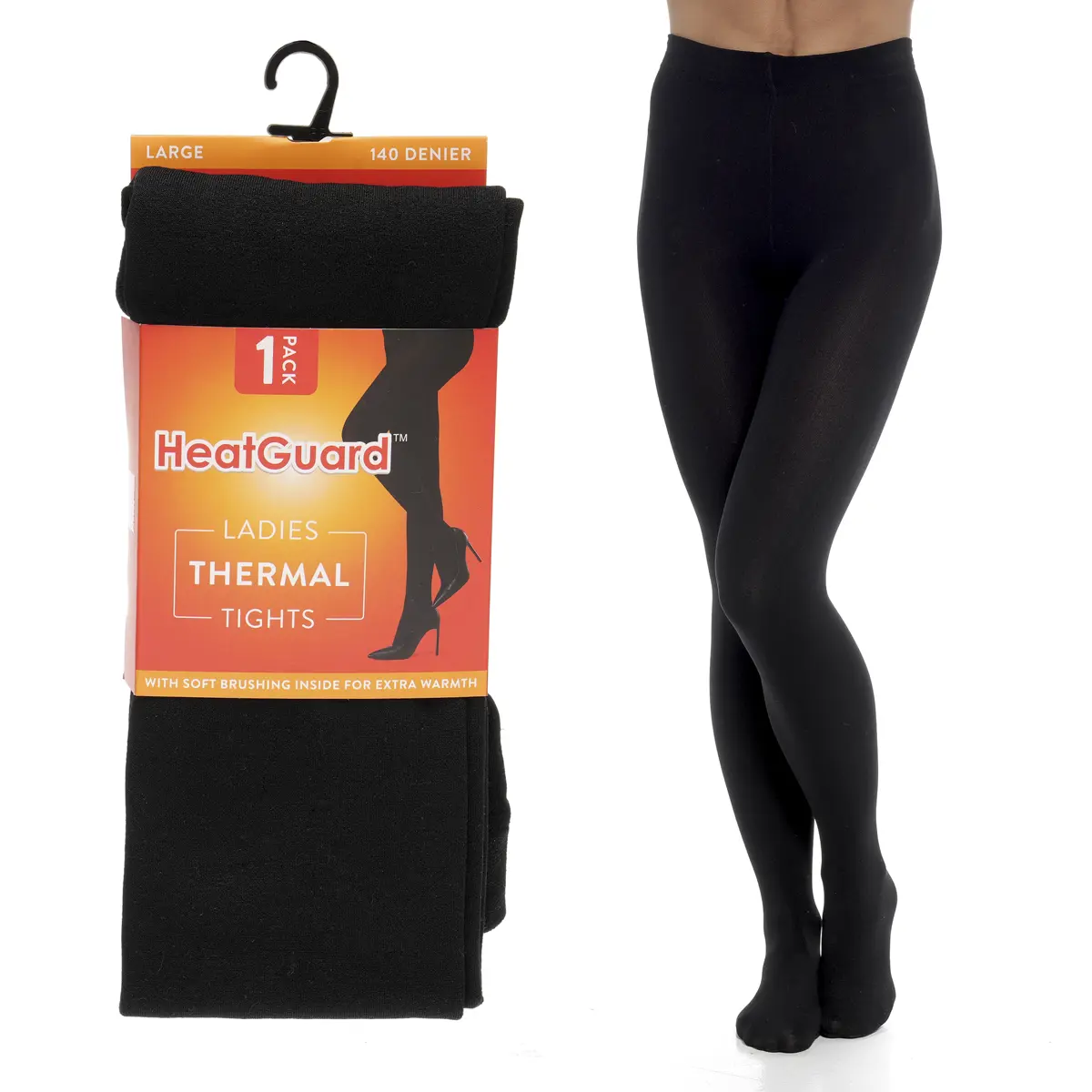 Don't let the cold weather cramp your style. These HeatGuard  ladies thermal tights are here to keep you warm, comfortable, and stylish all season long. These 140 denier black tights can be paired with skirts, dresses, or long jumpers, making them a versatile addition to your winter wardrobe.
