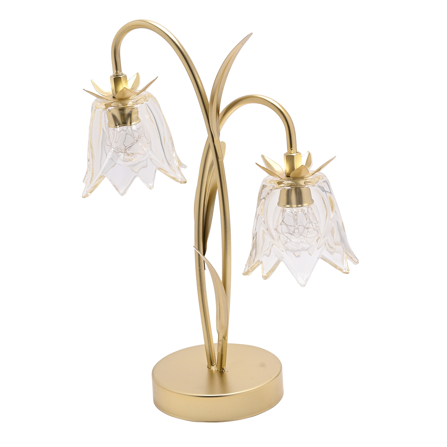 Hestia 2 Stem LED Lamp With Champagne Glass Flower And Gold Base