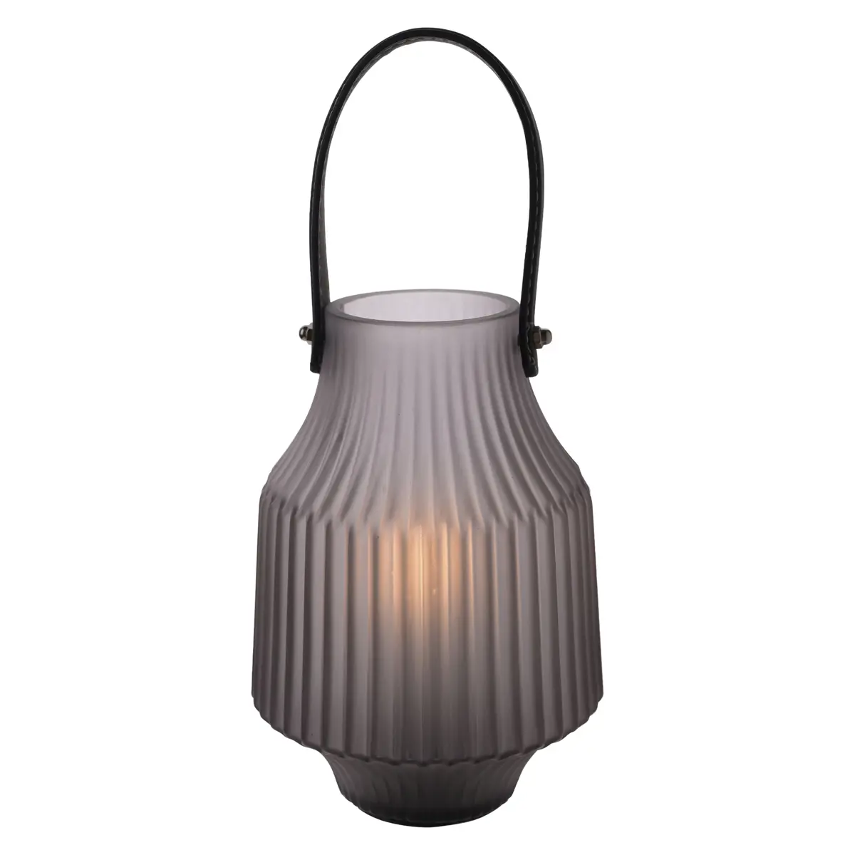 Bring a warm, atmospheric glow to your home with this frosted grey portable lantern from Modern Elegance by HESTIA®.
