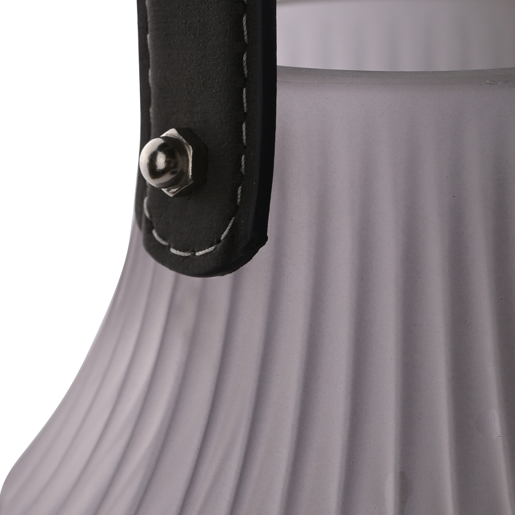Featuring a beautifully textured frosted glass design, this battery-operated lantern blends modern styling with soft, ambient lighting. The gentle LED light creates a relaxed mood, ideal for evenings indoors or as a decorative piece. With a faux leather handle for easy placement, it's both practical and elegant, perfect for any room or outdoor entertaining space.