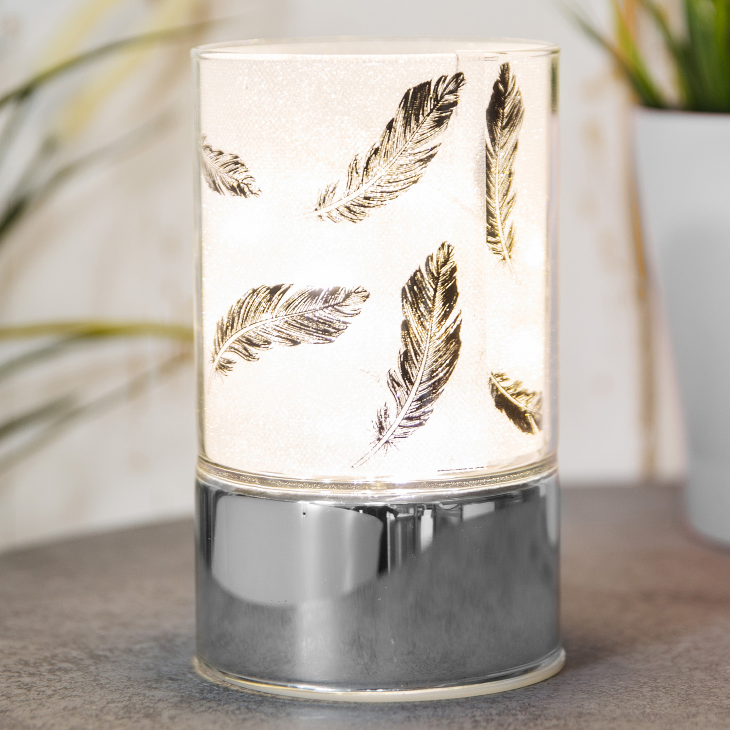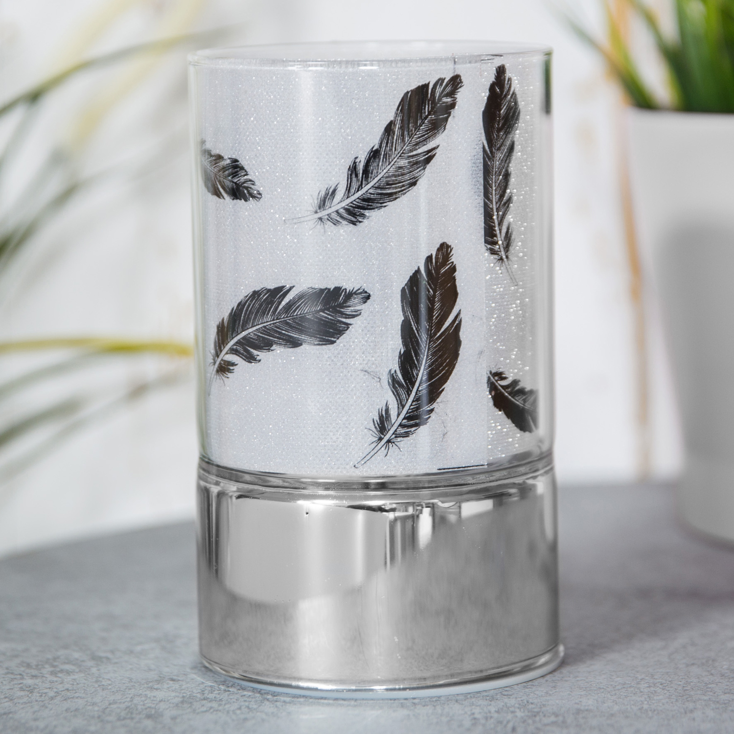 HESTIA® Glass Black Feather Design Tube with LEDs 9 x 15cm