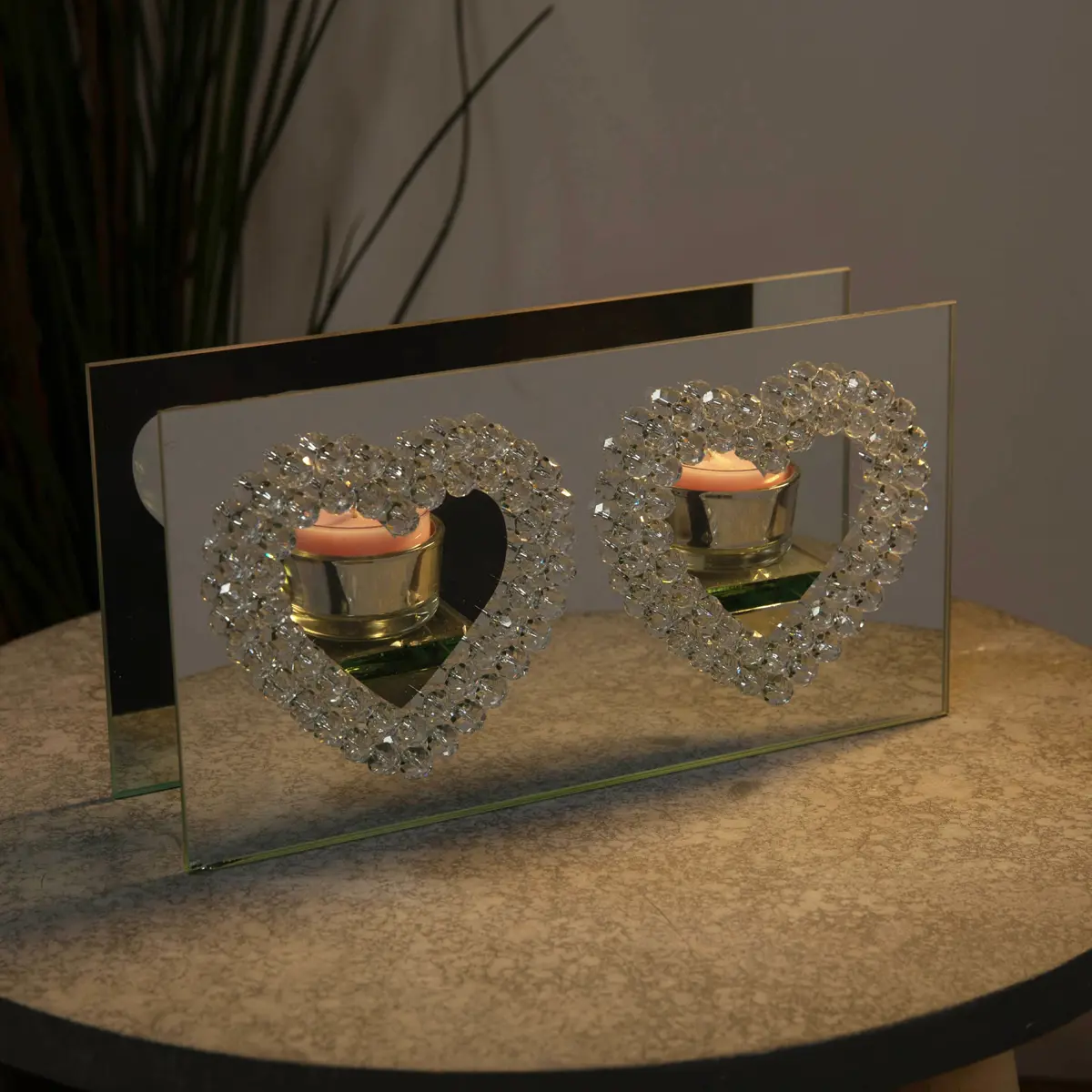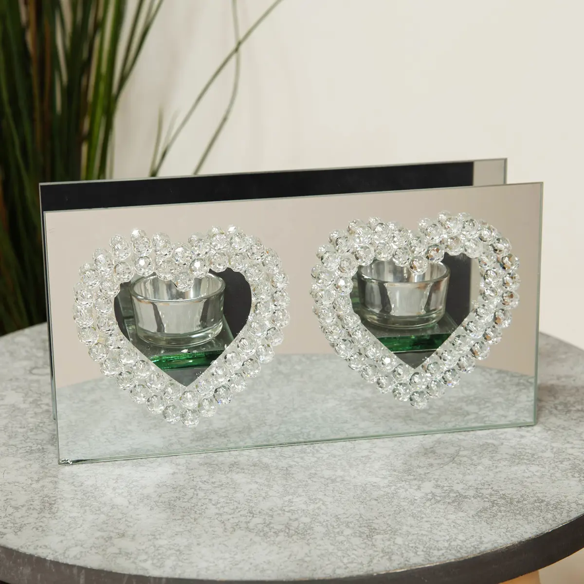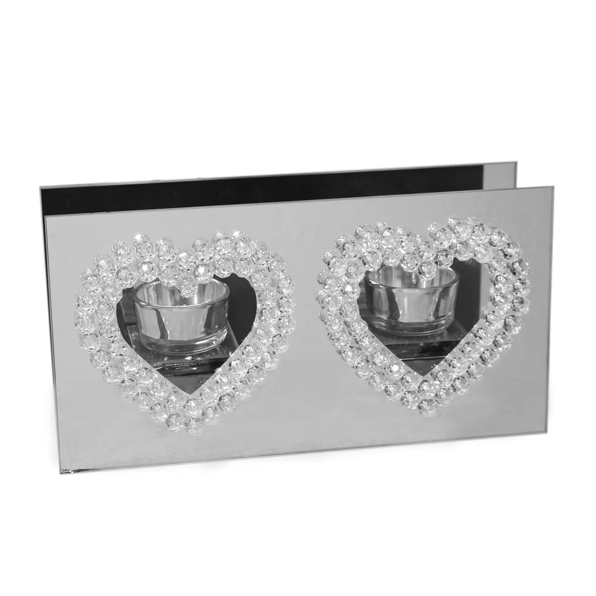 Hestia Mirror Glass Double Tea Light Holder Heart Design