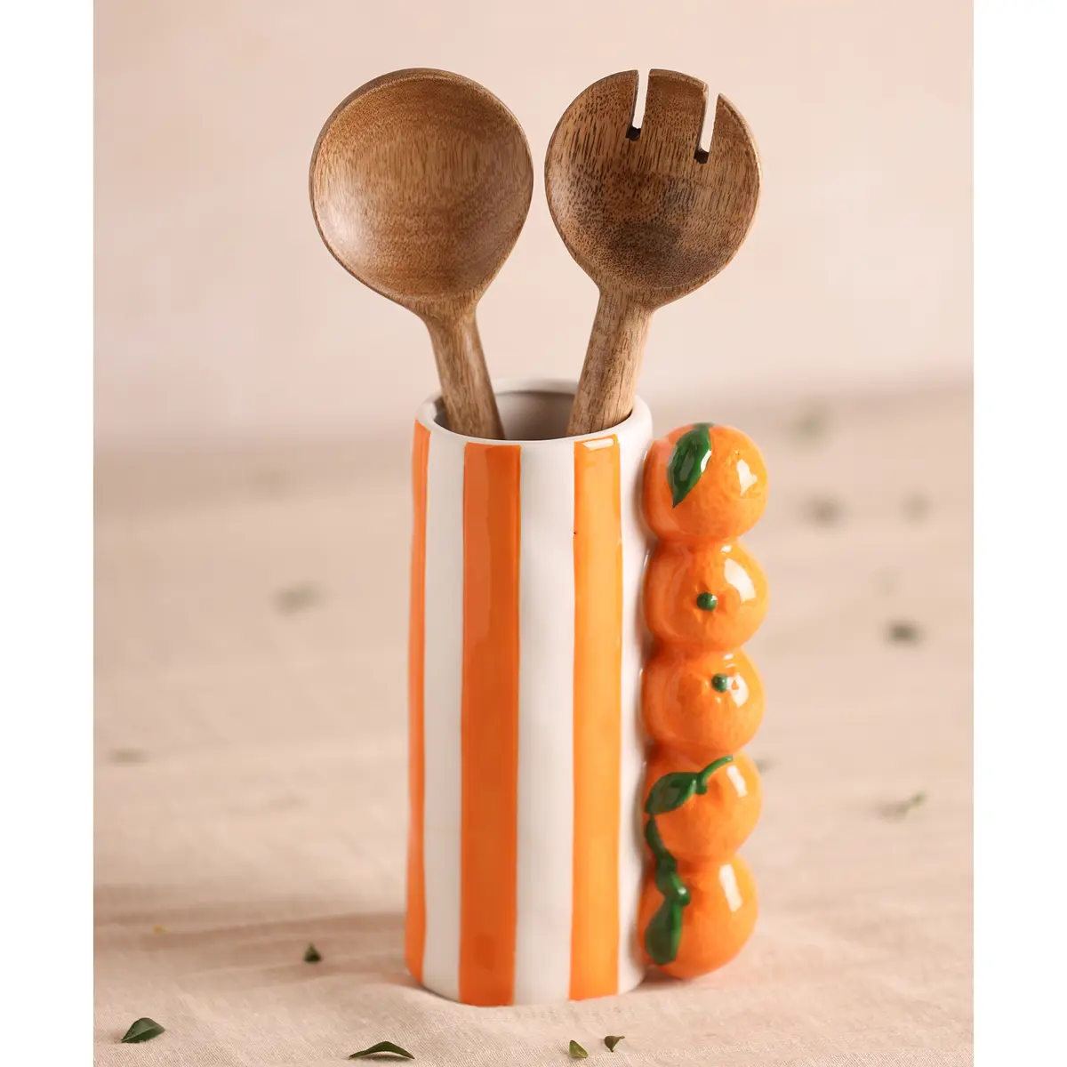 Bring a touch of Mediterranean charm to your space with the Hestia Orange Striped Vase. Crafted from ceramic, this delightful piece features vibrant orange and white stripes adorned with lifelike citrus details, offering a burst of sunshine and whimsy to your décor. Whether filled with fresh blooms or left empty as a statement piece, it’s sure to brighten up any corner of your home with its playful character and eye-catching design.