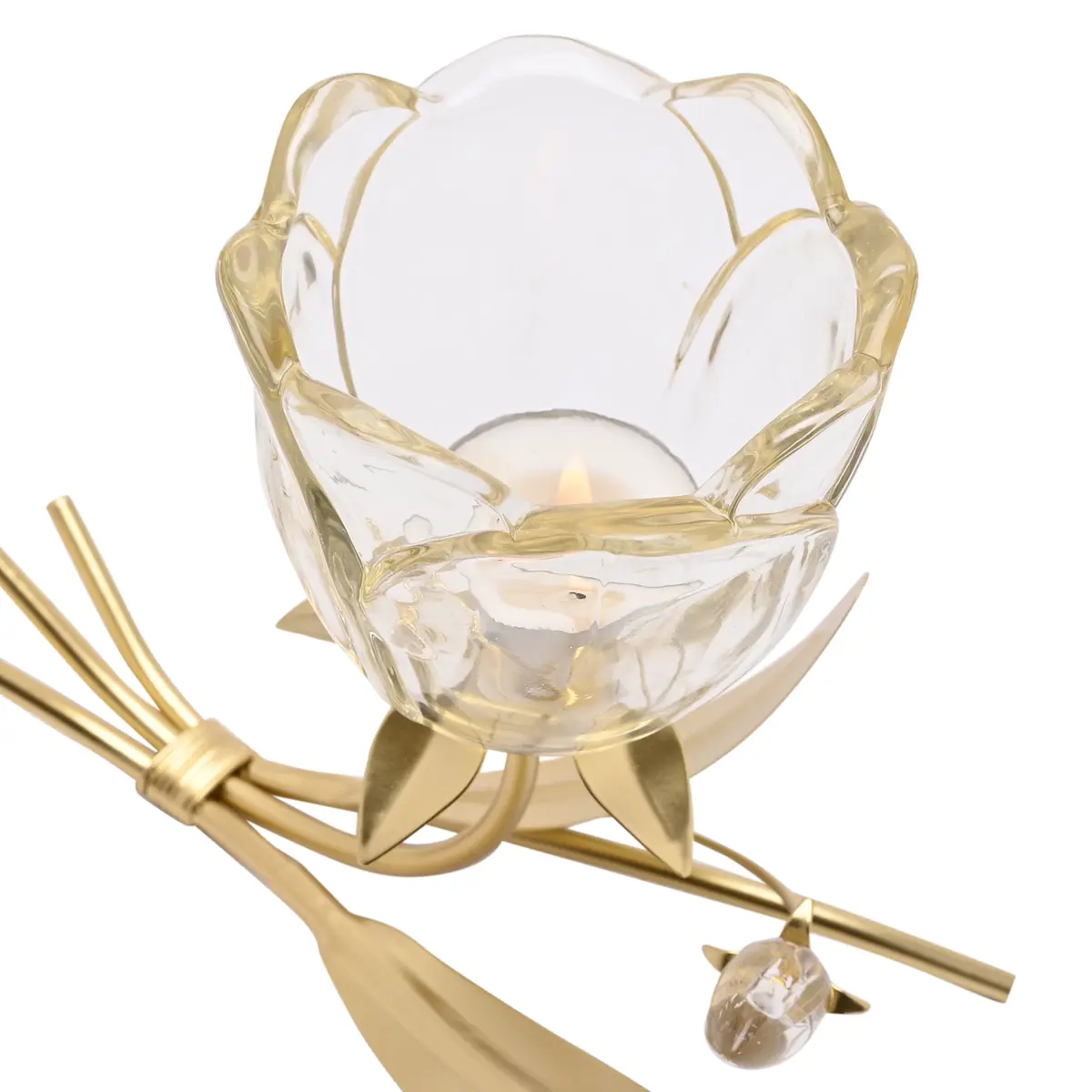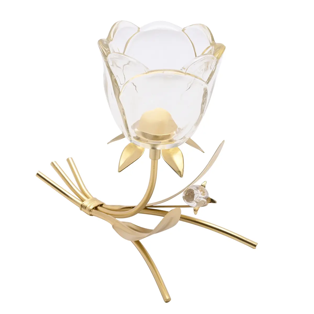 Hestia Single Stem Glass Holder With Champagne Glass Flower On Gold Base