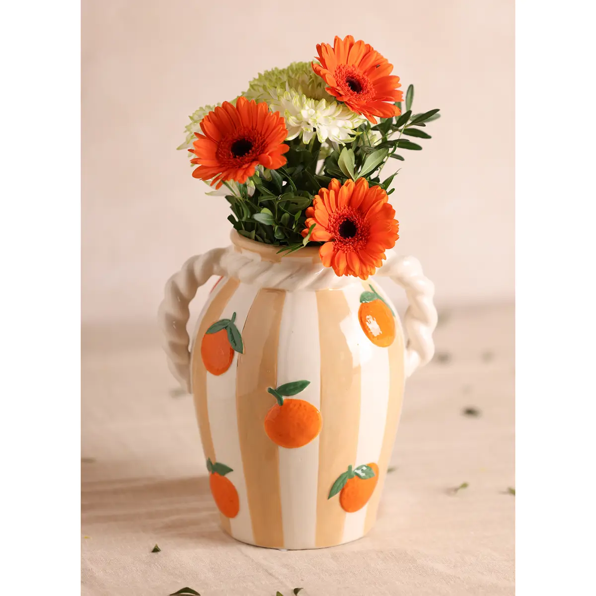 Hestia Striped Vase With Oranges And Rope Effect Handle