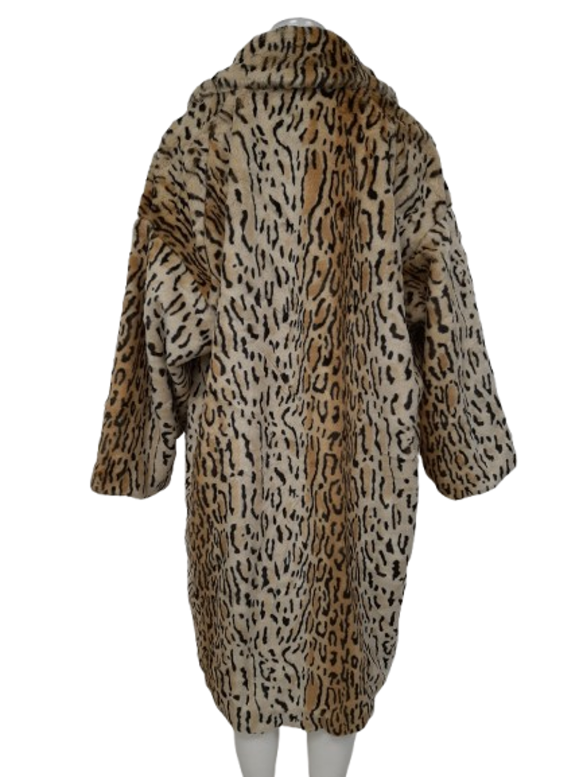 H&M Women's Leopard Print Faux Fur Long Coat - UK Size Medium