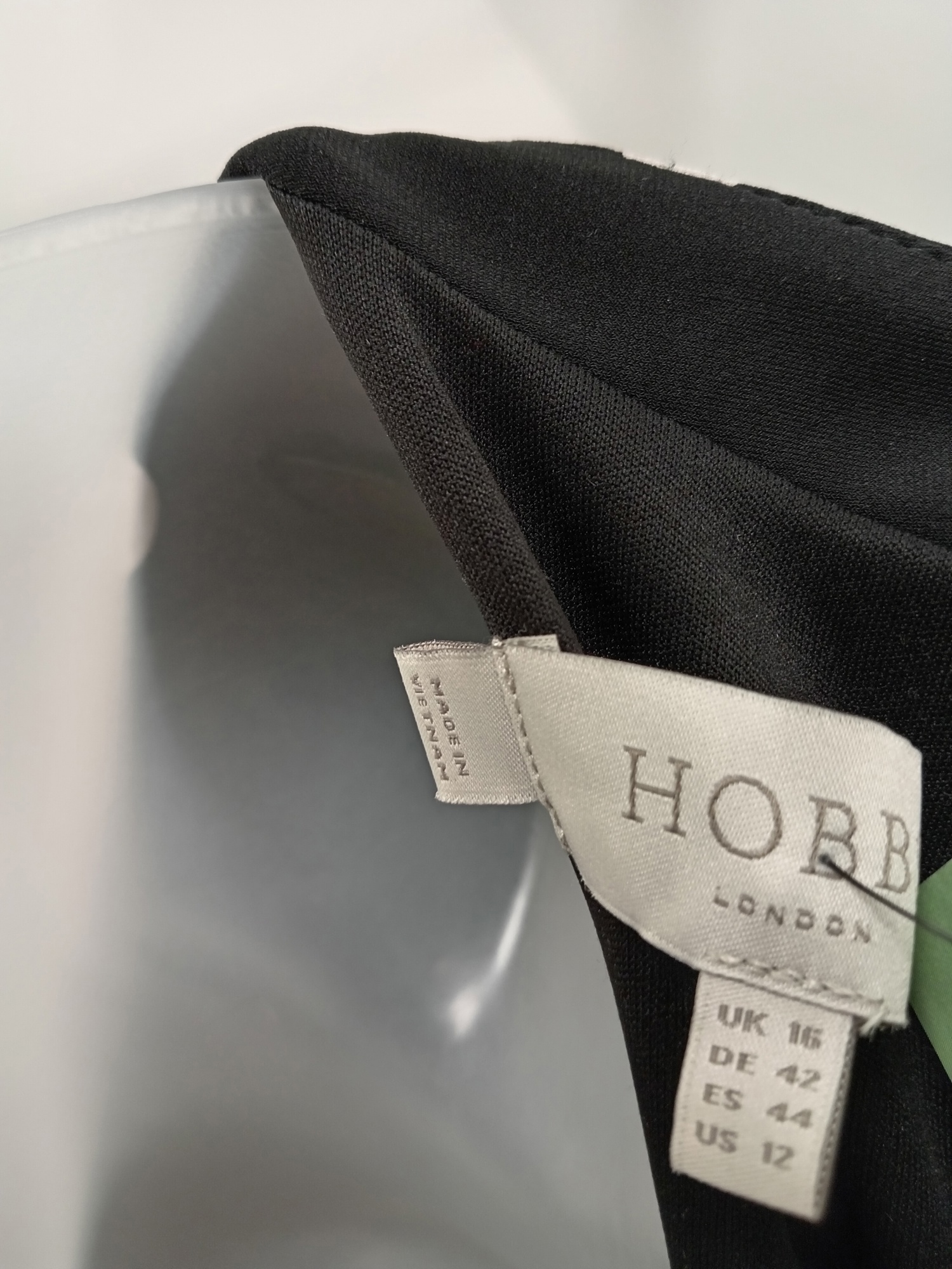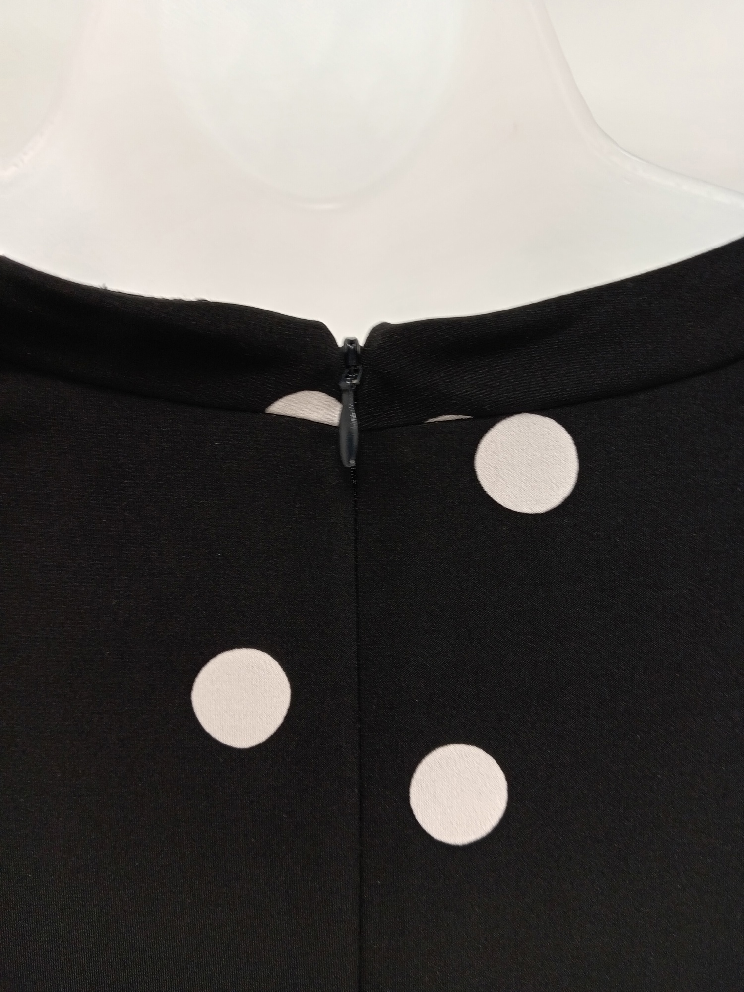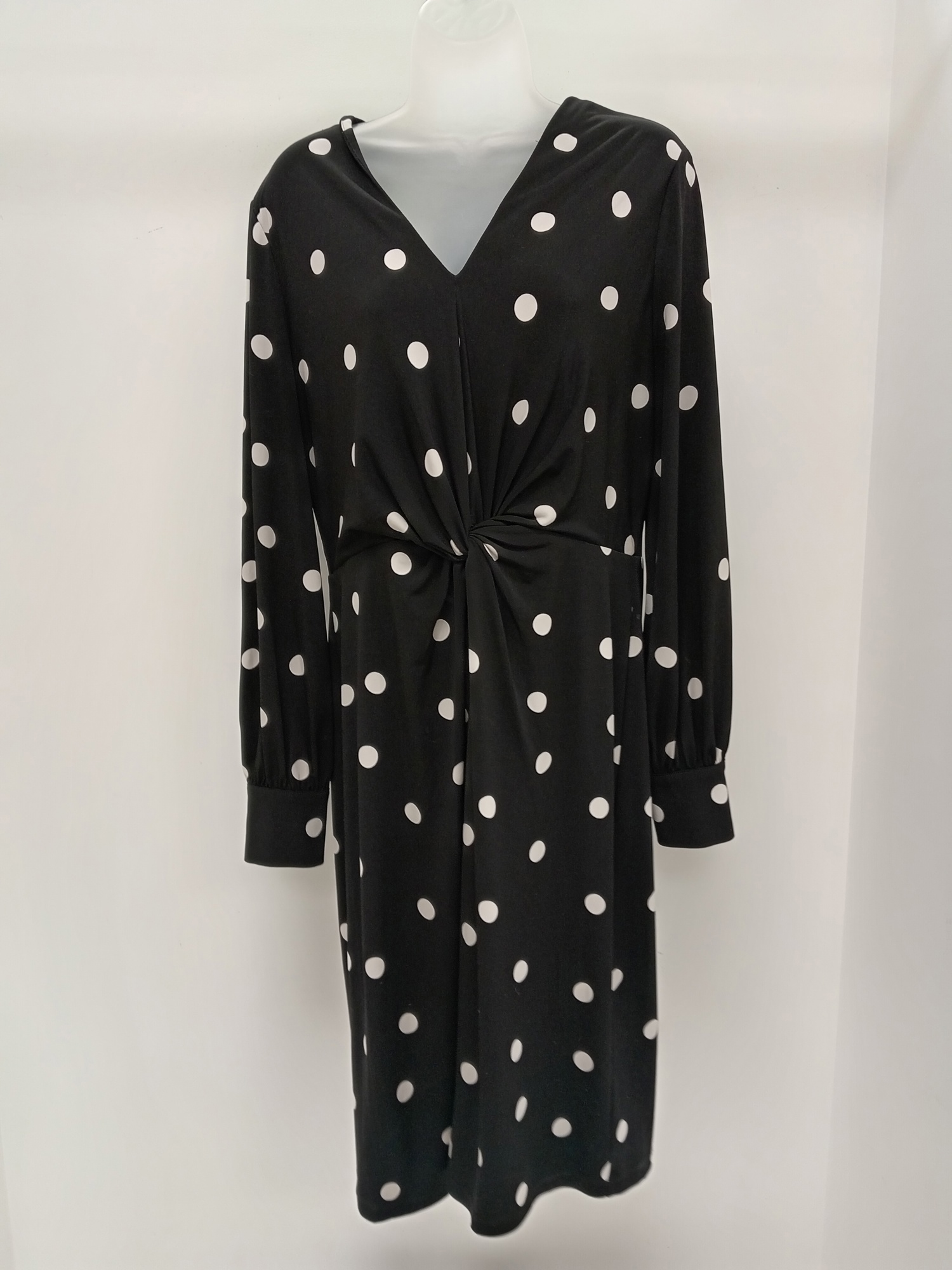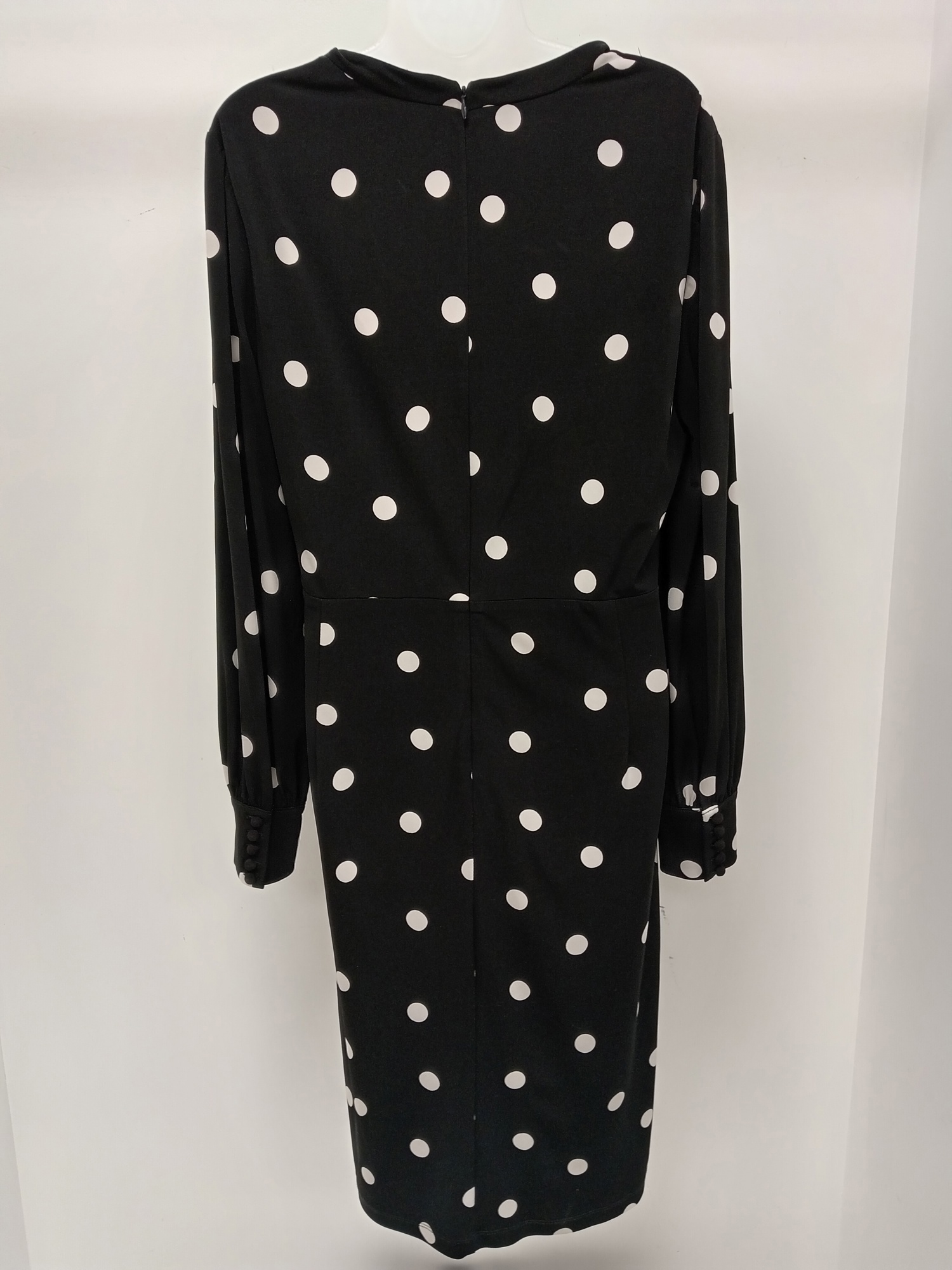 HOBBS Ladies UK Size 16 Monochrome Polka Dot V-Neck Ruched Black Dress – Pre-Loved (Used Condition)