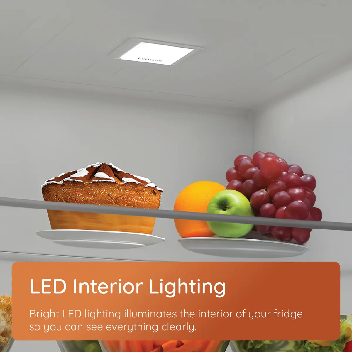 • Bright LED lighting illuminates every shelf and corner of the fridge