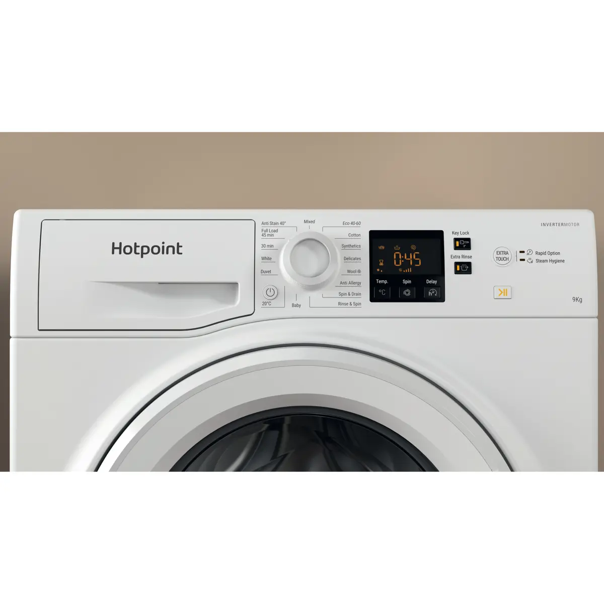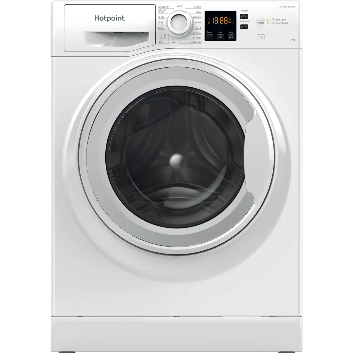 Handle even the biggest laundry loads with ease using the Hotpoint NSWM 946 W UK Washing Machine in classic white. With a generous 9kg drum capacity and a 1400rpm spin speed, it is ideal for large families who need reliable and efficient cleaning every day.