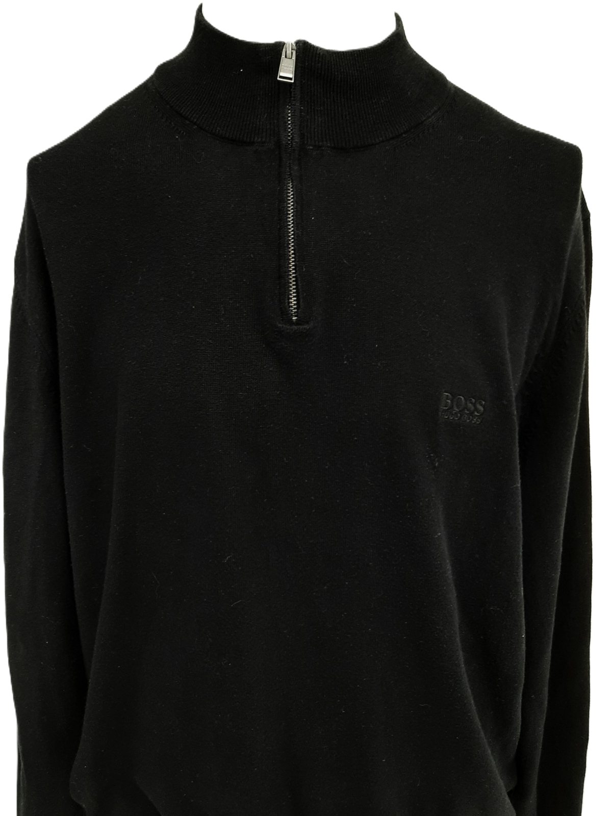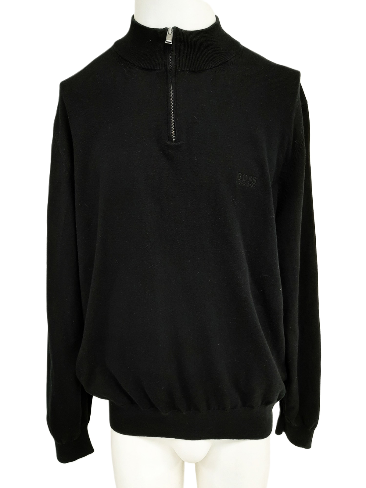 HUGO BOSS Men's Black Long Sleeve Quarter-Zip Sweater - Size 3XL - Pre-Loved Condition