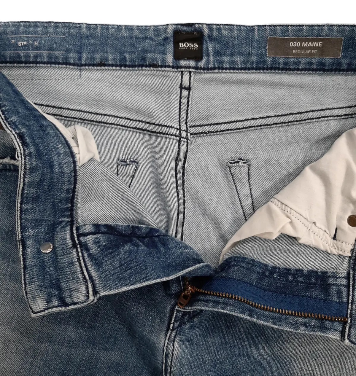 HUGO BOSS Men's Blue 030 MAINE Regular Fit Jeans Casual Size 34W Pre-Loved