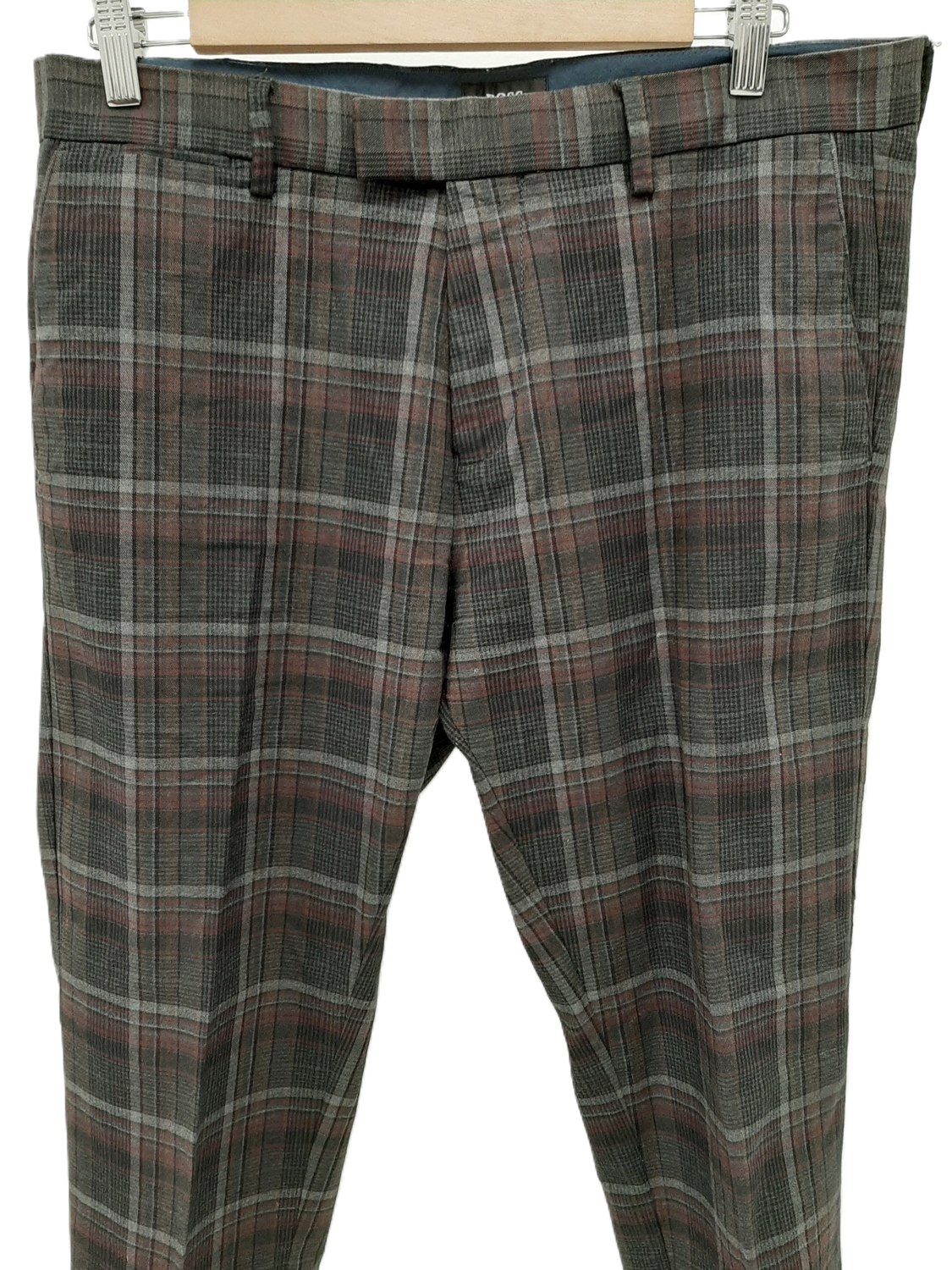 HUGO BOSS Men's Checked Patterned Trousers Size UK W34" Smart Casual Pre-Loved