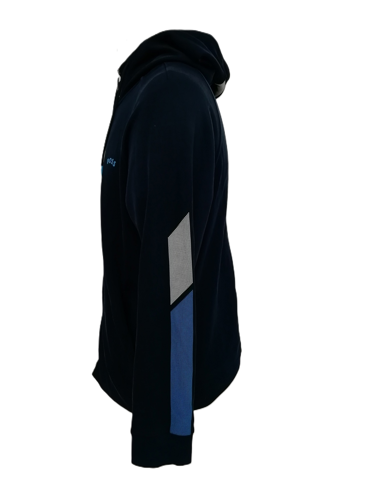 This navy hoodie features a full-length zip closure for easy layering and a comfortable fit. The minimalist design is accented with subtle Hugo Boss branding for a touch of sophistication. A drawstring hood and ribbed cuffs and hem provide added comfort and structure, while the front pockets add practicality and convenience.