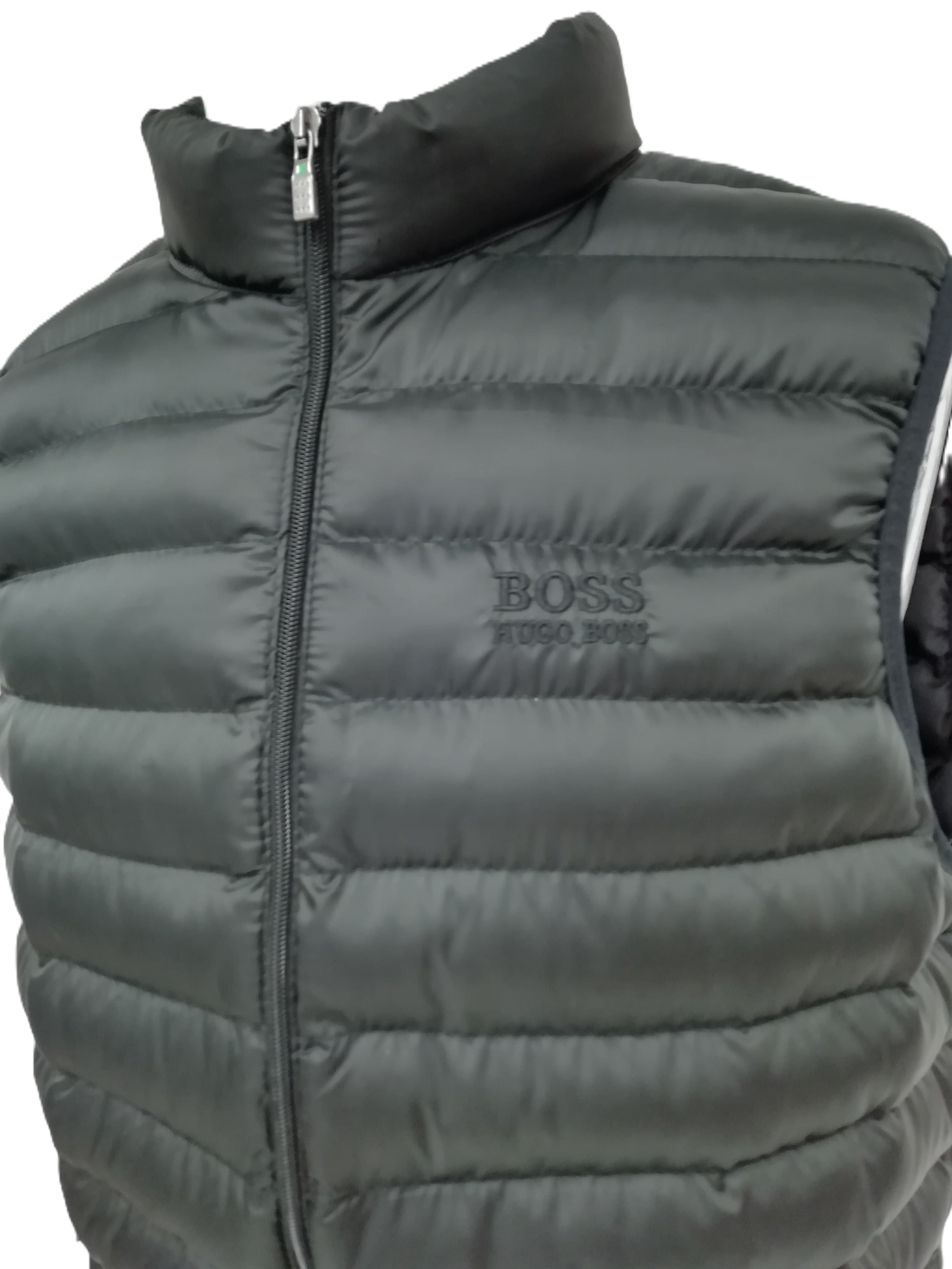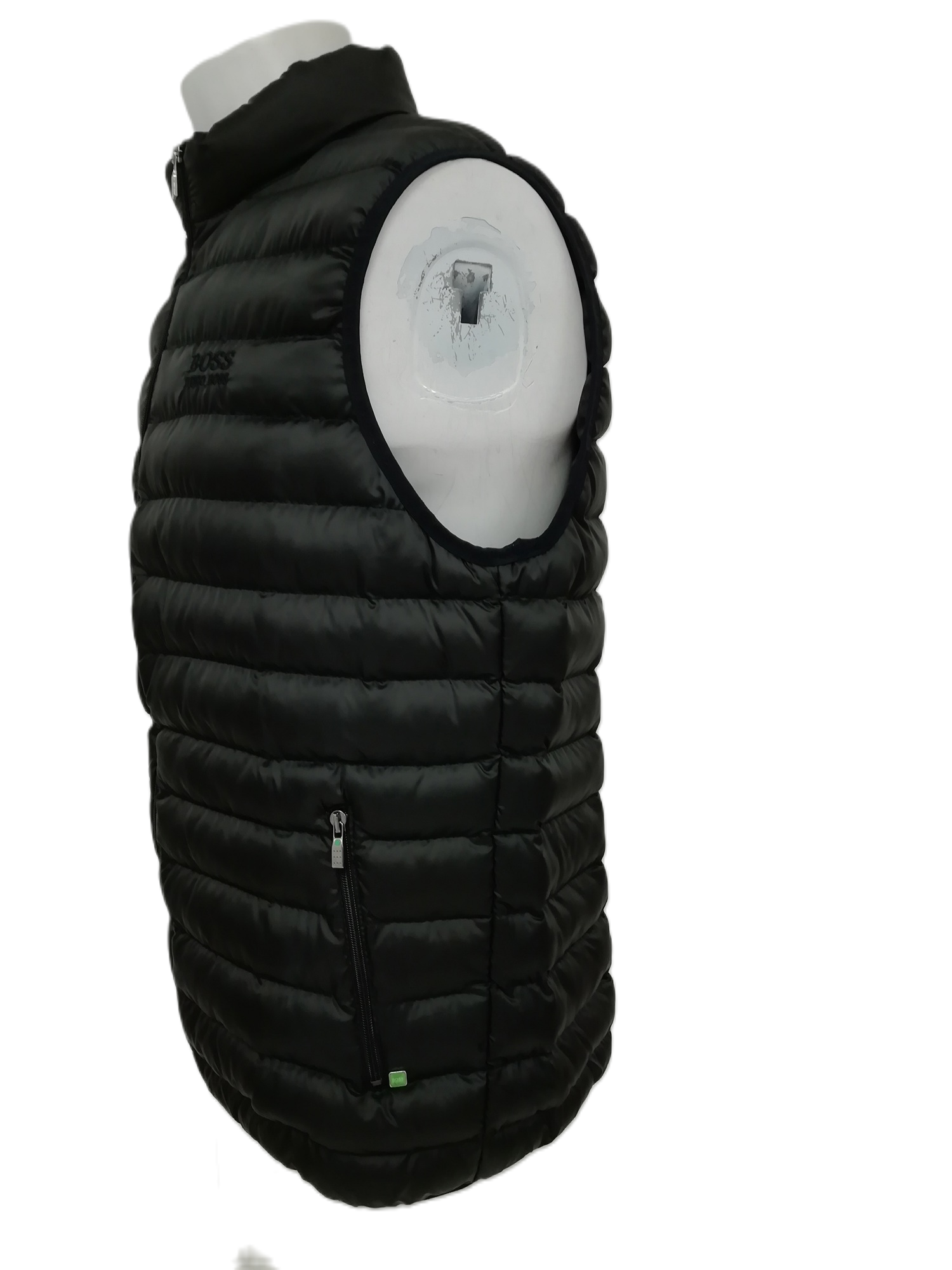 Crafted in timeless black, this gilet features a padded design for lightweight insulation and a full zip-up front for ease of wear. The high-neck collar provides added warmth, while the minimalist design is complemented by subtle Hugo Boss branding. Its sleeveless construction makes it perfect for layering over long-sleeve shirts, sweaters, or hoodies.