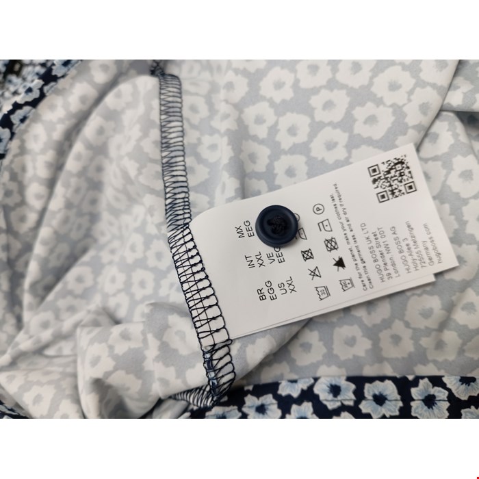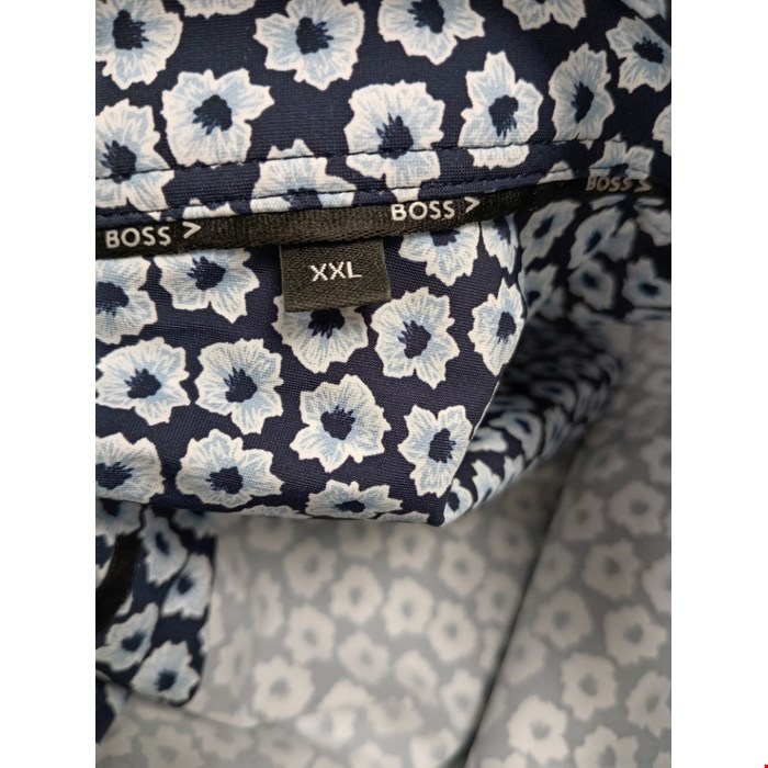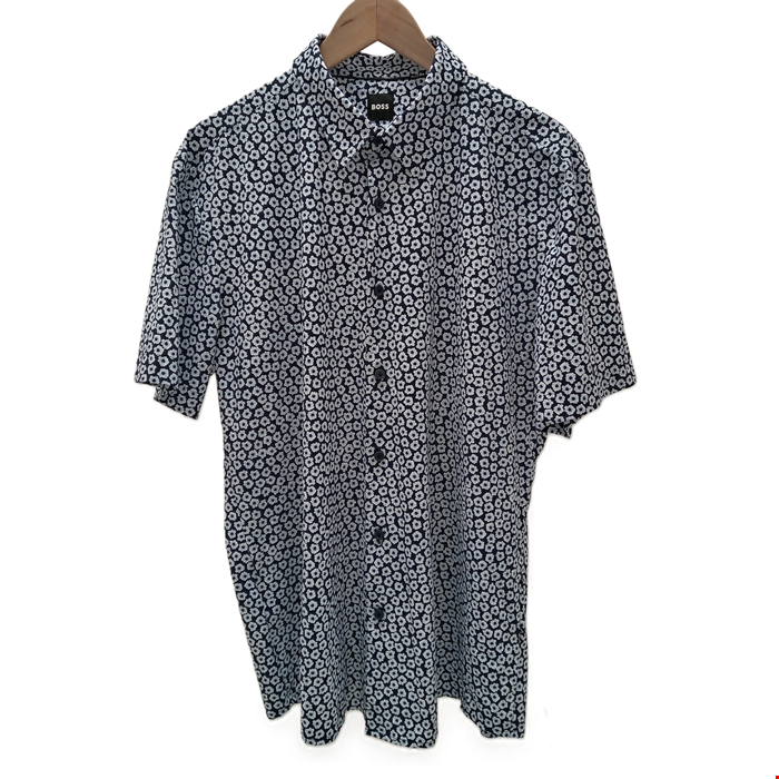 HUGO BOSS Men's UK Size XXL Slim Fit Blue Floral Short Sleeve Shirt