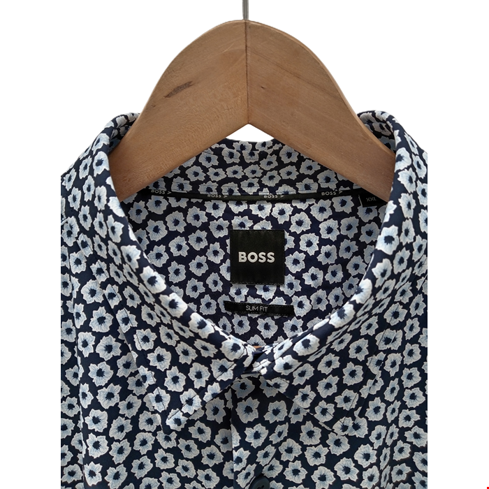 Elevate your casual wardrobe with this stylish Hugo Boss slim-fit short-sleeve shirt. Featuring an eye-catching blue floral print, this shirt is perfect for adding a refined yet relaxed touch to your look. Designed with a flattering slim-fit silhouette, a button-up front, and a sharp collar for a polished finish.