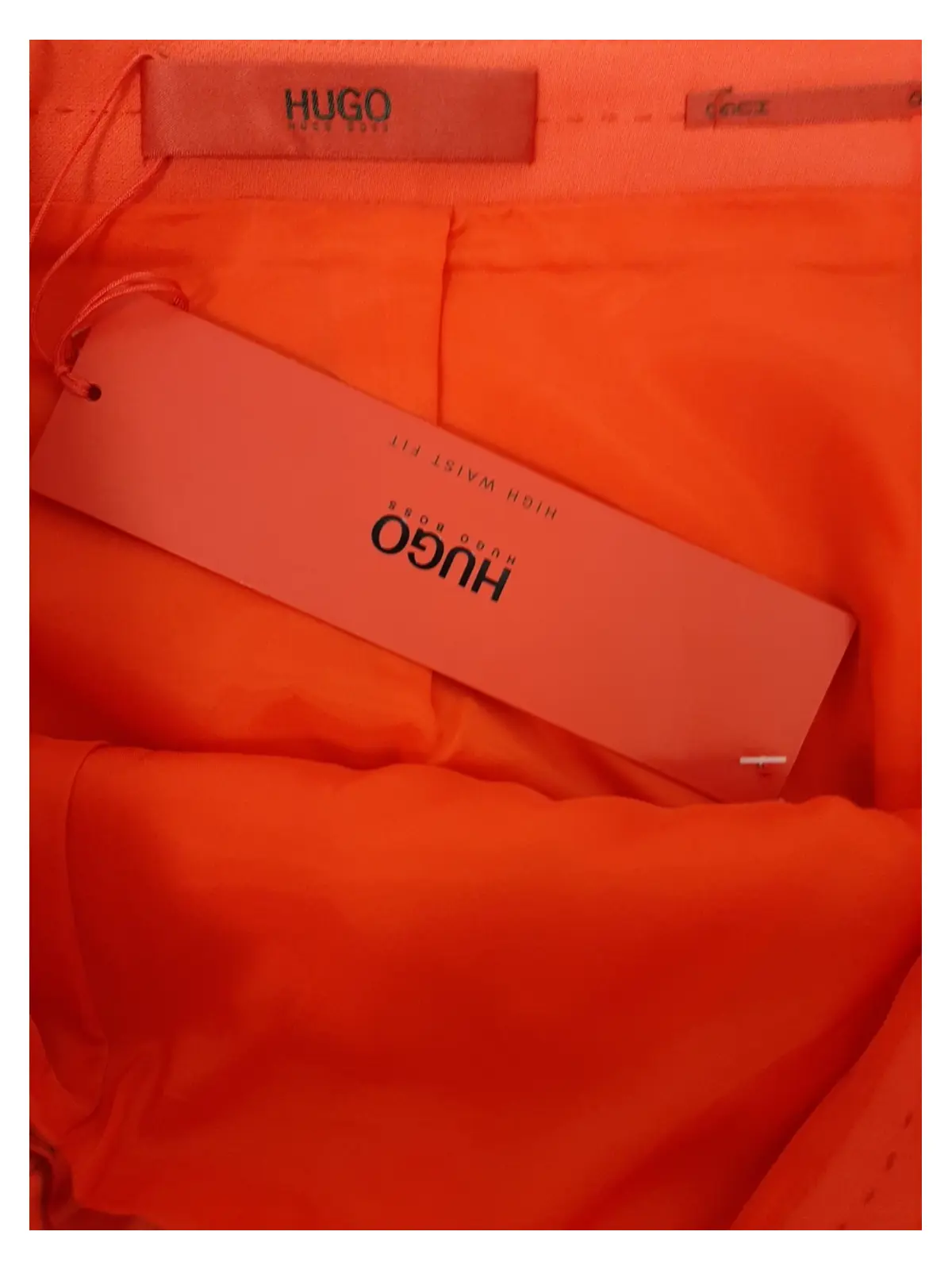 Add a touch of sophistication to your wardrobe with this striking red high-waist skirt from HUGO BOSS. Perfect for both professional and social occasions, this skirt combines timeless elegance with a flattering fit.