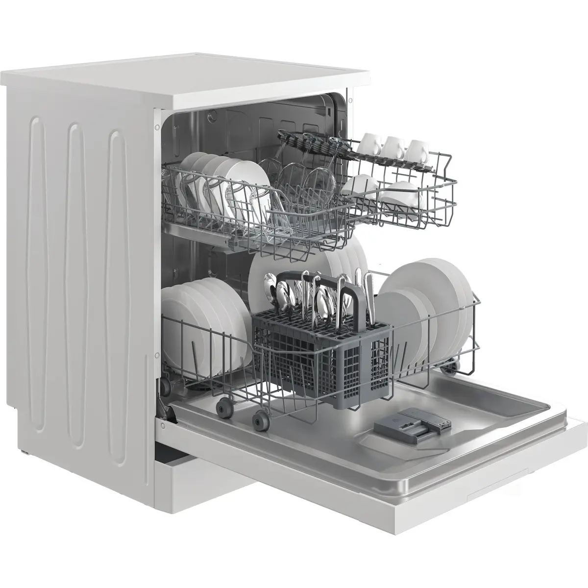 Make cleaning up after family meals effortless with the Indesit IN2FE13DT9WUK Freestanding Dishwasher in classic white. With space for 13 place settings and a convenient cutlery basket, this full-size dishwasher is perfect for busy households and helps keep your kitchen running smoothly.