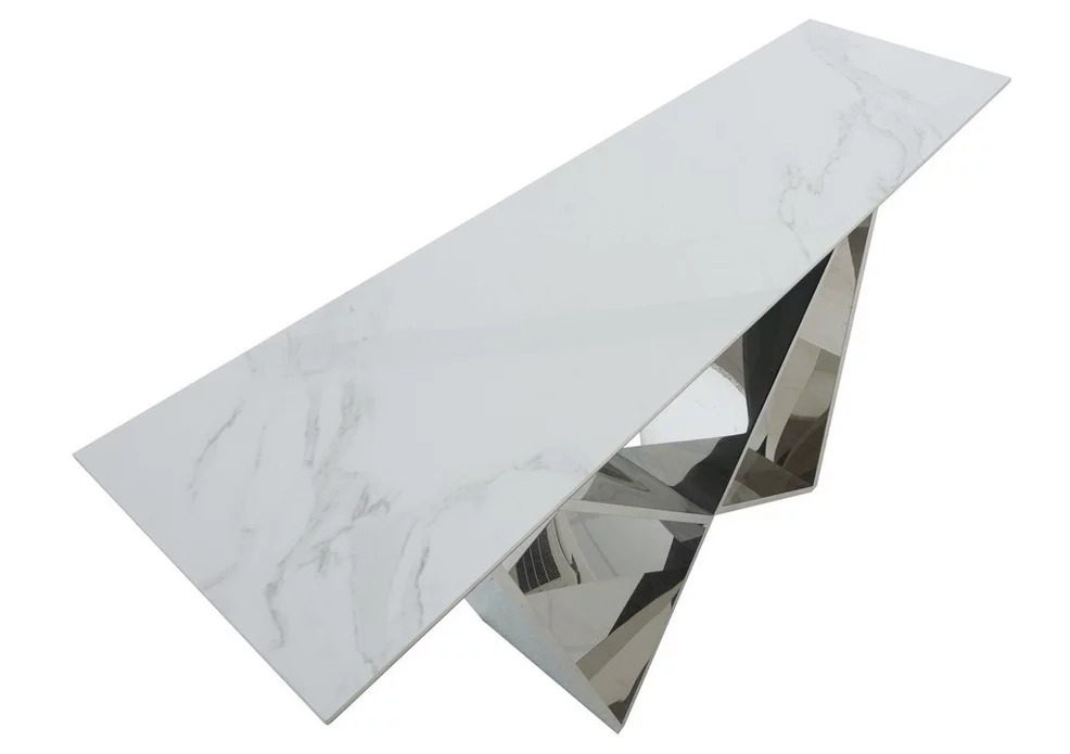 Expertly handcrafted for lasting quality, the 12mm ceramic top is both elegant and practical — resistant to heat, scratches, and chips, while maintaining a beautiful glossy finish that won’t fade over time. Supported by a polished stainless-steel base, this console table combines artisan craftsmanship with functional durability, making it a stunning yet reliable addition to your home.