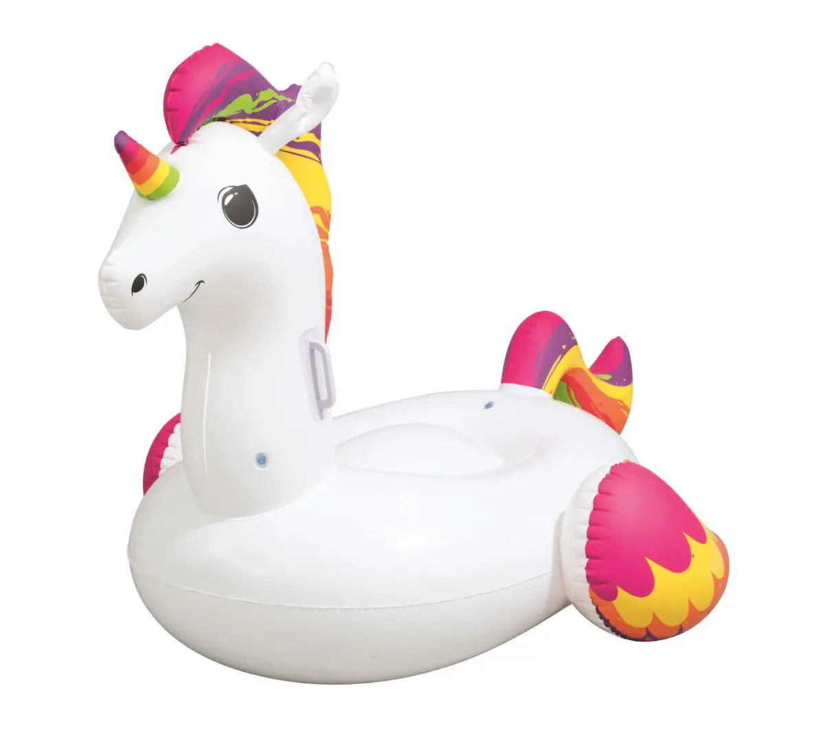 Planning a magical getaway? Turn up the sparkle with your very own ride-on unicorn. Designed for enjoyment by the whole family, this mega float adds a new dimension to pooltime play. Shaped like a ‘real-life’ unicorn, the inflatable creature offers a seating surface, as well as a mane, tail and wings to hold onto. PVC material makes the float ultra-durable for hours of fun and a sturdy plastic adds an added element of security for anyone jumping aboard. Once unpacked and inflated, the ride-on unicorn float will be your trusted chariot – wherever your imagination takes you.